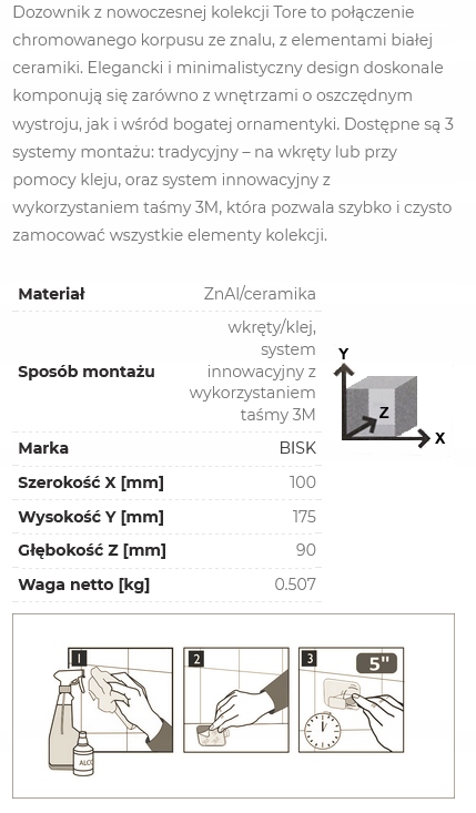 зовнішній вигляд та естетику інтер’єру. Завдяки спеціальному покриттю, дозатор довговічний і простий у чистці. Усі додаткові елементи є твердими і будуть служити протягом багатьох років.