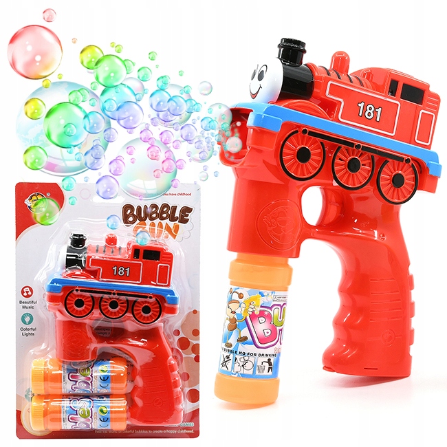 Ласощі для маленьких любителів мильних бульбашок - бульбашковий пістолет у формі червоного паровозика, що нагадує героя з улюбленої дітьми казки.