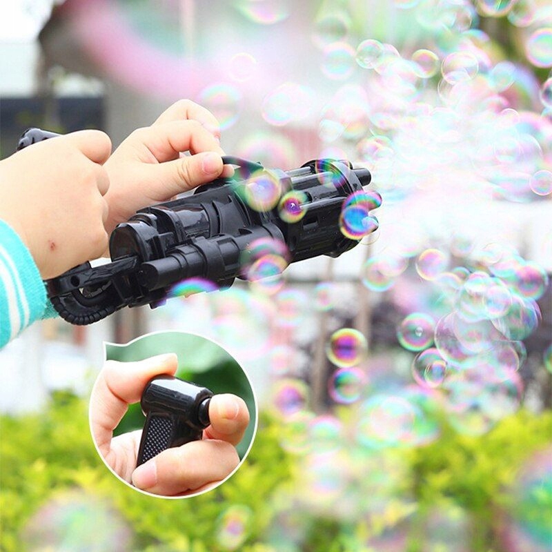 Автомат для бульбашок також можна використовувати як маленьку вентилятор, щоб діти прохолоджувалися та відчували комфорт під вітерцем, коли вони втомилися. Просто вставте 3 батарейки типу АА (не входять у комплект), натисніть на бульбашку рідини та натисніть на курок, і з неї вискочить багато бульбашок!