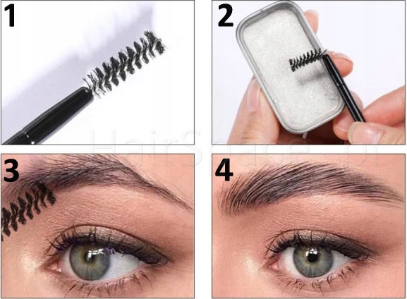 Це професійний продукт для оформлення рамки очей. Надає природну і підкреслену форму дузі, приручає волоски і дозволяє отримати бажану форму брів, а також покращує щільність, через що вони здавалися густішими.