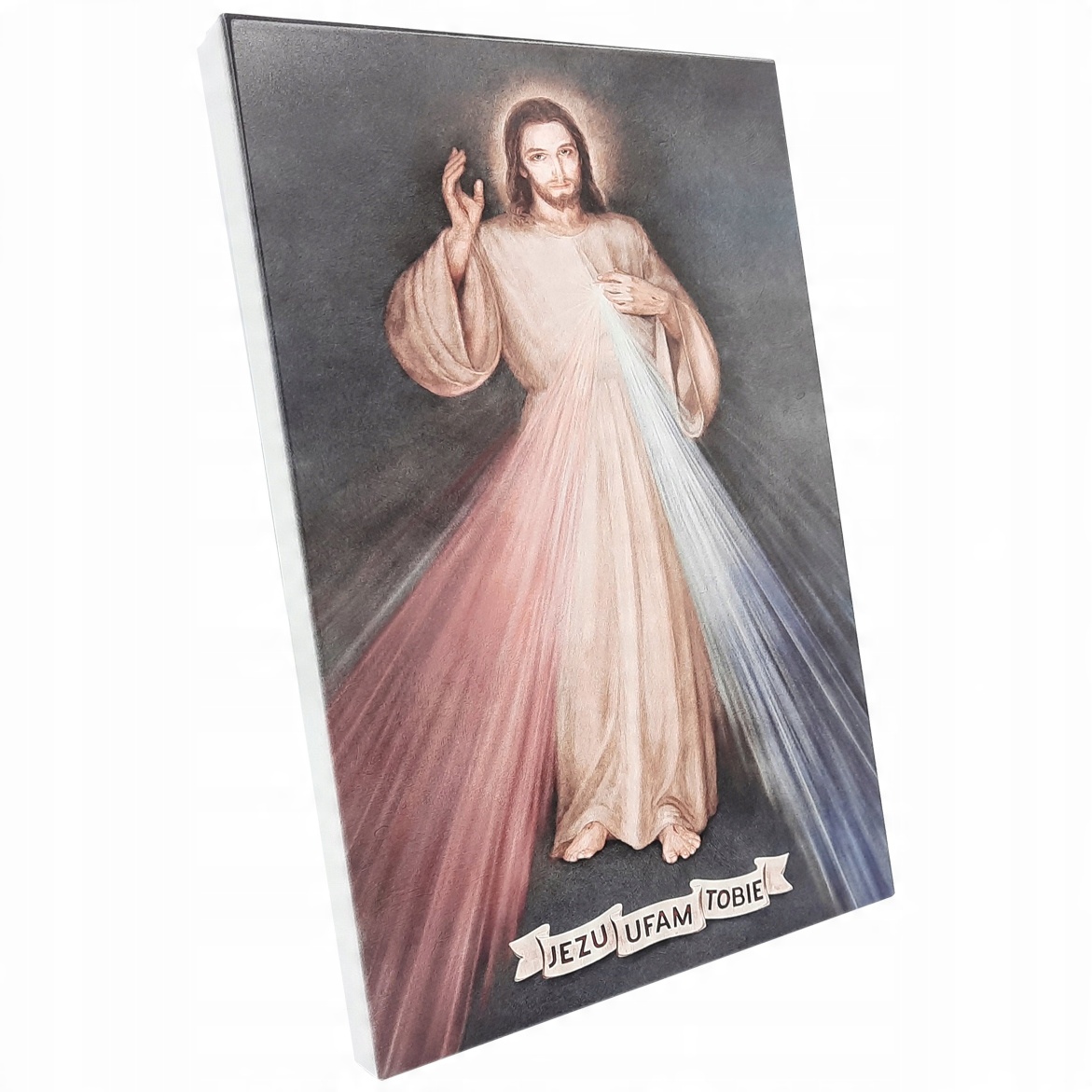 Малюнок, який є унікальне поєднання традицій і сучасності. Образ Ісуса Милосердного виготовлений у сучасній техніці нанесення барвистого зображення на деревину.