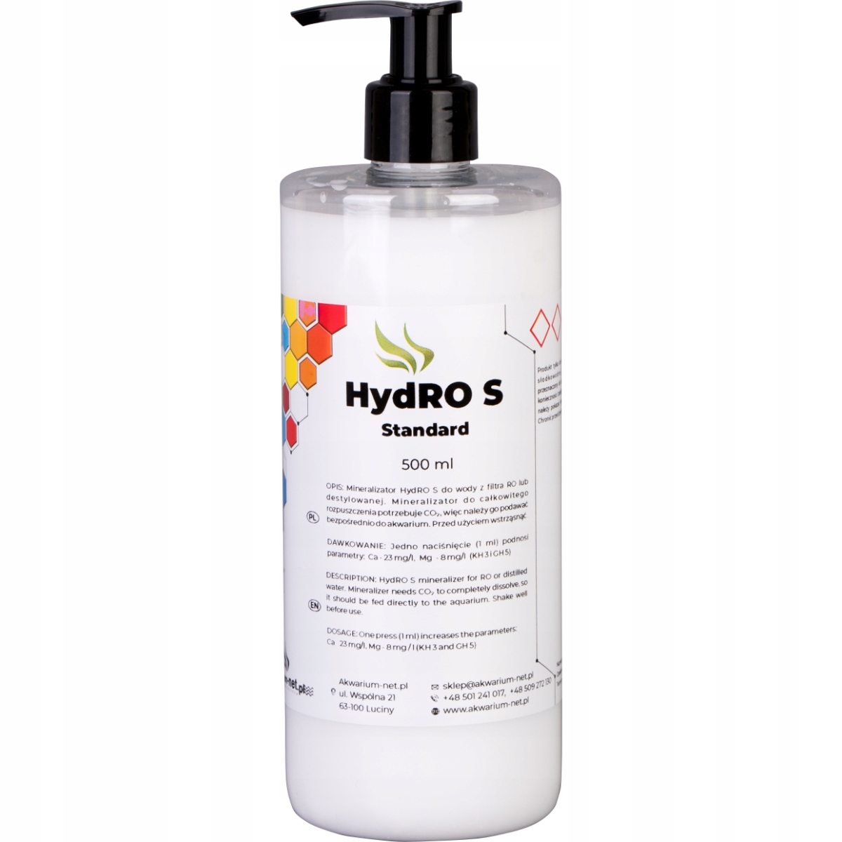 ДОЗА: Кожна 1 мл цього розчину на 1 літр RO води дає такі параметри (Ca 23, Mg 8 мг/л, загальна жорсткість GH = 5, карбонатна жорсткість KH = 3), наприклад, щоб отримати ці параметри при 50 літрів RO води, необхідно ввести 50 натискань мінералізатора (50 мл)