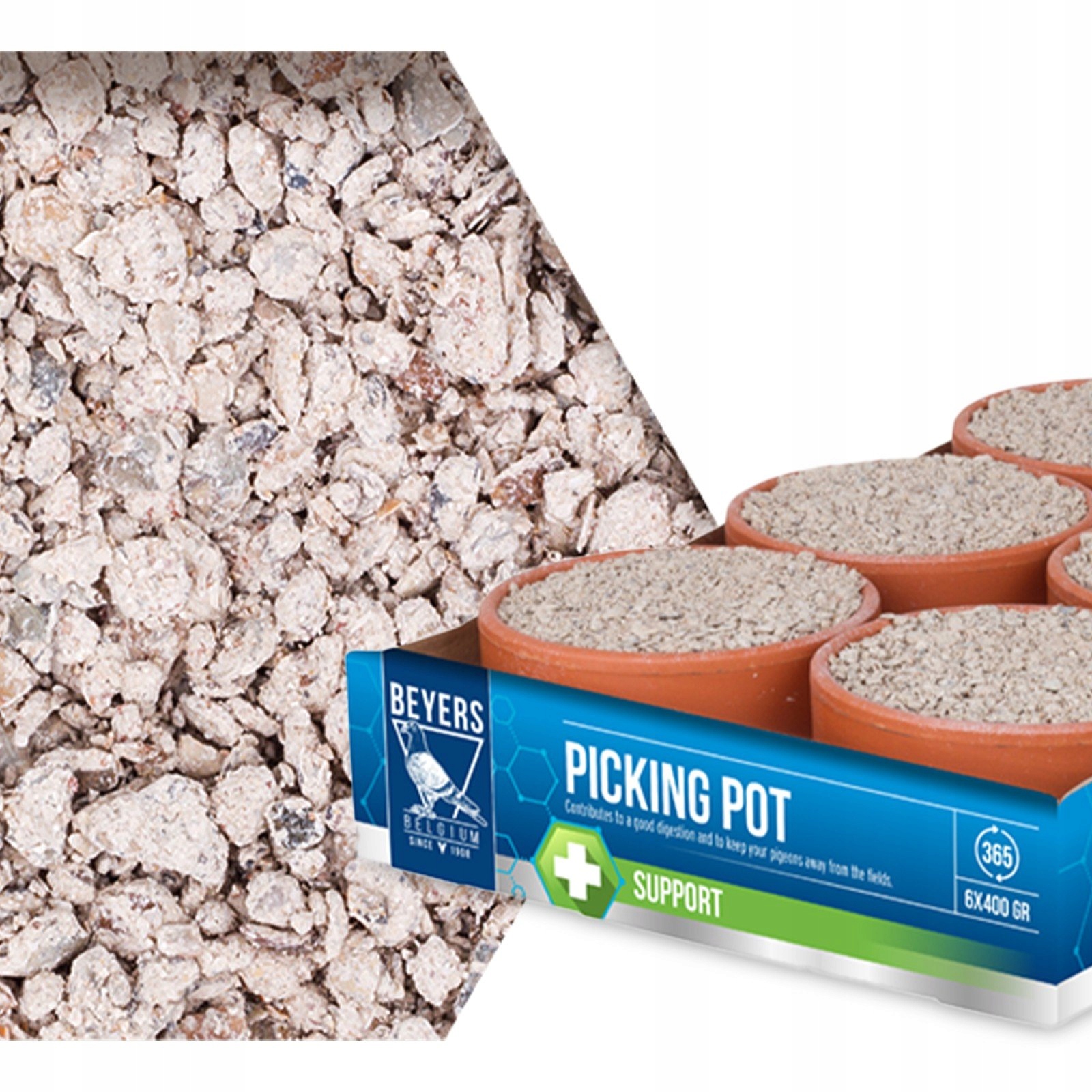 BEYERS PICKING POT – це функціональна мінеральна суміш, створена з урахуванням травних потреб голубів. Він містить черепашку, червоний камінь, гострі кісточки шлунка та пшоно, які функціонують як механічне травлення. Завдяки постійному доступу до збору поту голуби краще засвоюють поживні речовини та залишаються сильними цілий рік.
