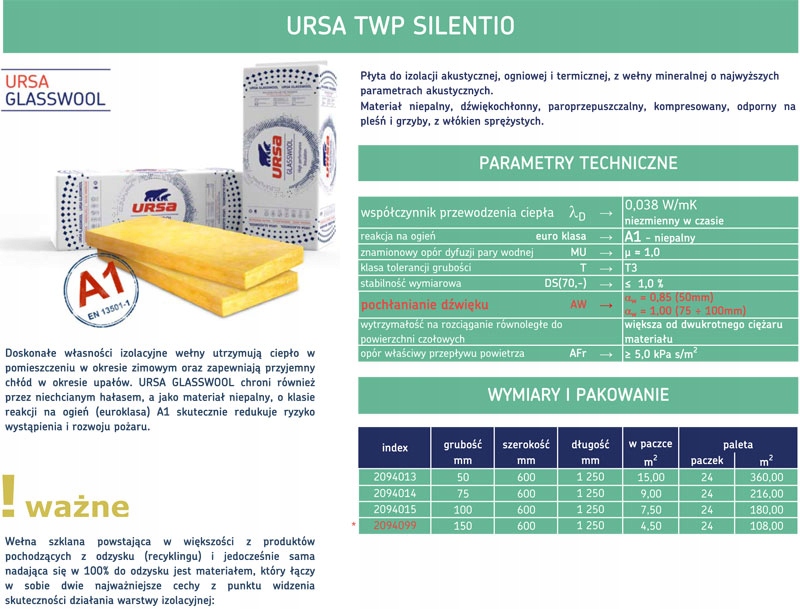 Просматривая «МИНЕРАЛЬНАЯ ВАТА Ursa SILENTIO 38 10 100 плита», вы можете быть уверены, что данный товар из каталога «Остальные» будет доставлен из Польши и проверен на целостность. В цене товара, указанной на сайте, учтена доставка из Польши. Внимание!!! Товары для Евросоюза, согласно законодательству стран Евросоюза, могут отличаться упаковкой или наполнением.