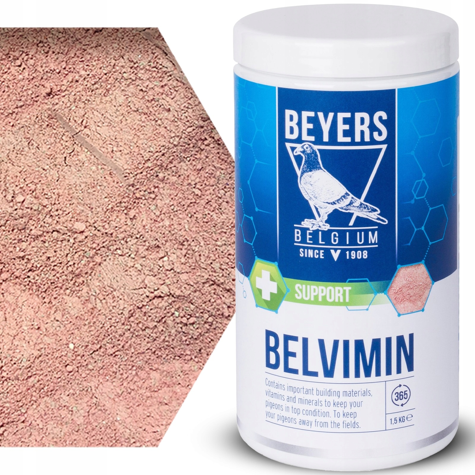 Beyers Belvimin — комплексна мінерально-вітамінна суміш, призначена для цілорічної підтримки спортивних і племінних голубів. Він зміцнює імунітет, підтримує розвиток кісток і м'язів і допомагає запобігти отруєнню кормом і навколишнім середовищем. Високий вміст кальцію та фосфору робить його незамінним доповненням до кожного голубника.