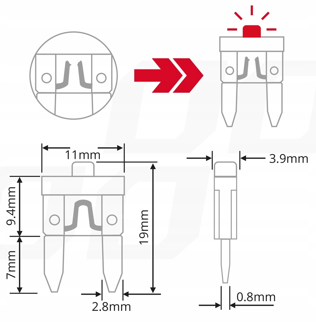 - побудований -in світлодіод - вказує пошкоджений запобіжник, забезпечуючи просту та швидку ідентифікацію проблеми. Шматки, ідеальні як замінники або резерв.