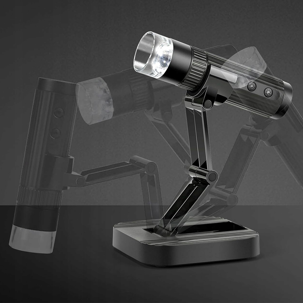 - Цифровий мікроскоп оснащений складною підставкою, яка дозволяє вільно регулювати кут і висоту.