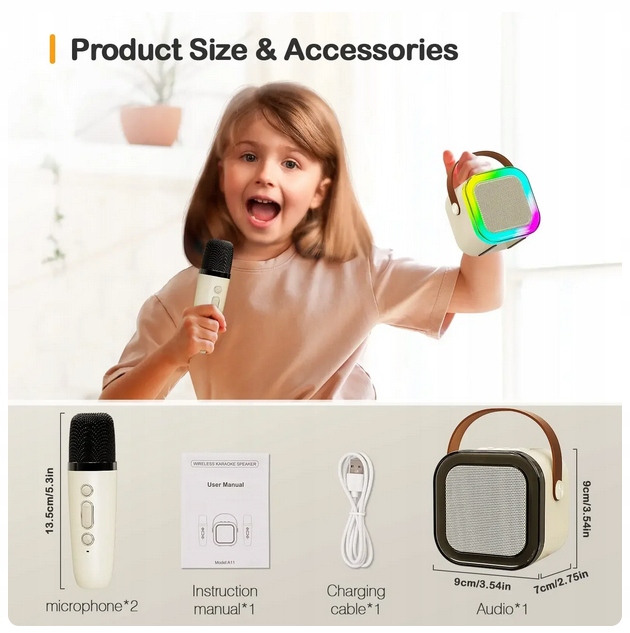 Bluetooth 5.0 та широка сумісність пристрій караоке для дітей оснащений найновішим, вдосконаленим інтелектуальним мікросхем Bluetooth 5.0, забезпечуючи надзвичайно стабільне бездротове з'єднання з низькою затримкою 10 м/32,8 футів та високоякісним вражаючим звуком. Цей набір караоке за допомогою мікрофона також підтримує мікро-картки TF, USB та Aux-In Flash, завдяки якому сумісний з різними пристроями, такими як мобільні телефони, iPad, iPad, планшети, комп'ютери та телевізори. Діапазонні динаміки використовують передові технології розшифровки звуку MP3, повністю цифрова обробка звуку , чиста якість звуку, висока чутливість, висока та низька просторова баса Hifi, насолоджуйтесь комфортом, що забезпечує хорошу якість звуку. Звук , що диверсифікує подію караоке. Караоке набір для дівчат та хлопців містить звуки дівчат, звуків хлопців, дитячі звуки, звуки монстрів та оригінальні звуки . Різні режими освітлення Світлодіодні ритми б'ють музичний ритм, створюючи життєрадісну атмосферу для вечірки.