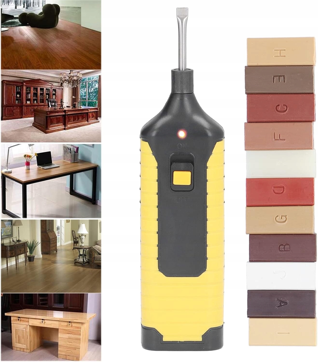 ремонт набору для деревини та паркетів, для легких та глибших подряпин, тріщин, отворів та точок тиску, дорогий ремонт вже в минулому. Купуйте цей комплект для ремонту для ламінату у восковому блоці, ви можете відремонтувати всі дерев’яні ламіновані підлоги, паркет, пробкові та дерев’яні меблі, такі як стільці, столи, шафи, робочі місця, двері, полиці та шафи
