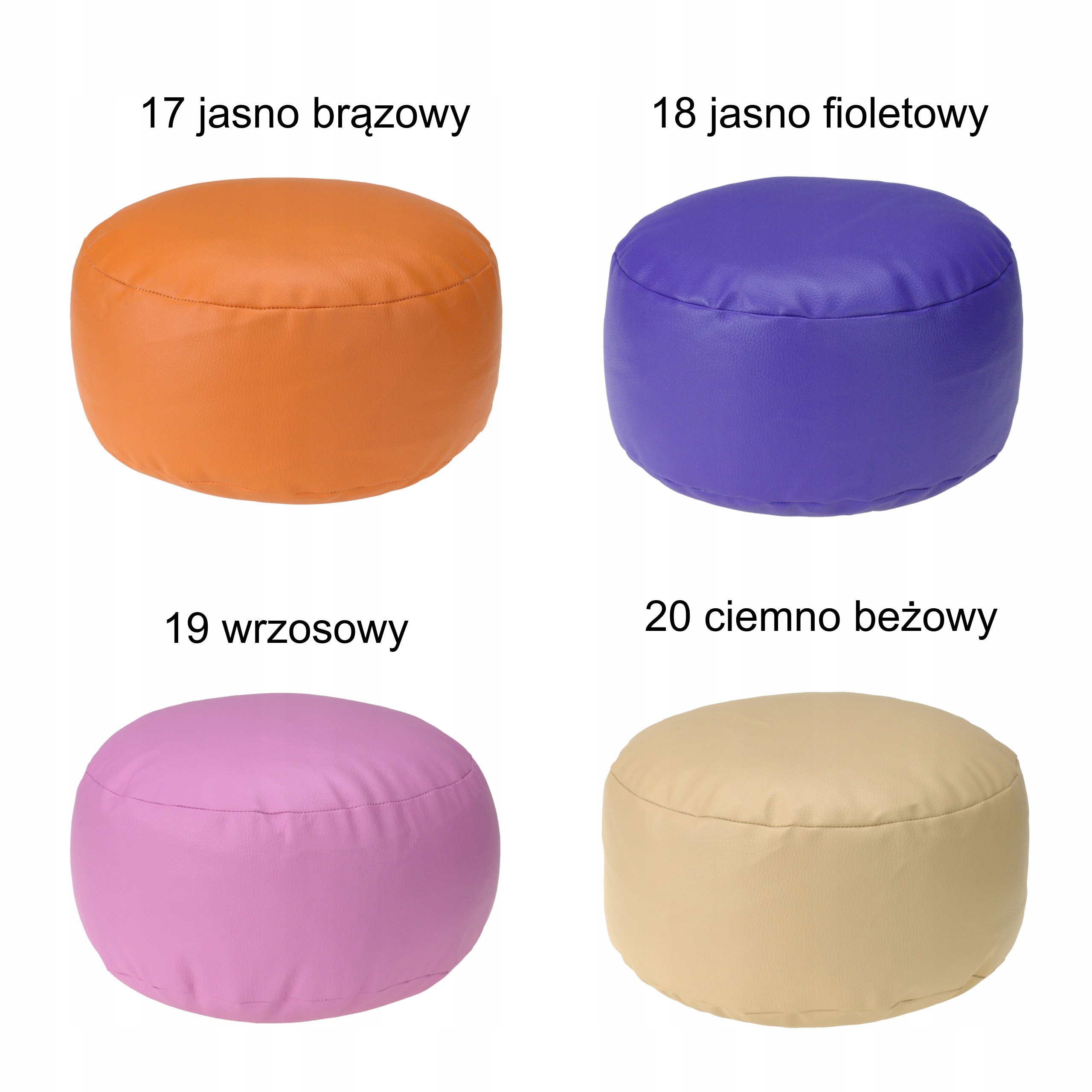 Тема аукціону - ролика pouf , у 20 кольорових версіях, які можна вибрати з . Розміри POUF діаметром 35 см і висотою 18 см . Кольорову версію можна вибрати вільно при покупці, вибираючи кольорові версії з візерунка або кольорової палітру на аукціоні. Ми описуємо інструкції щодо вибору кольору в тексті нижче. POUF -це меблі, що не містять шва, тому його розміри можуть змінюватися залежно від ваги людини за допомогою POUF або вибору наповнення. POUF як стандарт, наповнений сумішшю еластичних матеріалів для виробництва меблів , які забезпечують міцність та комфорт використання . Ролик був зроблений з Eco -Leather, який має сертифікат PZH.