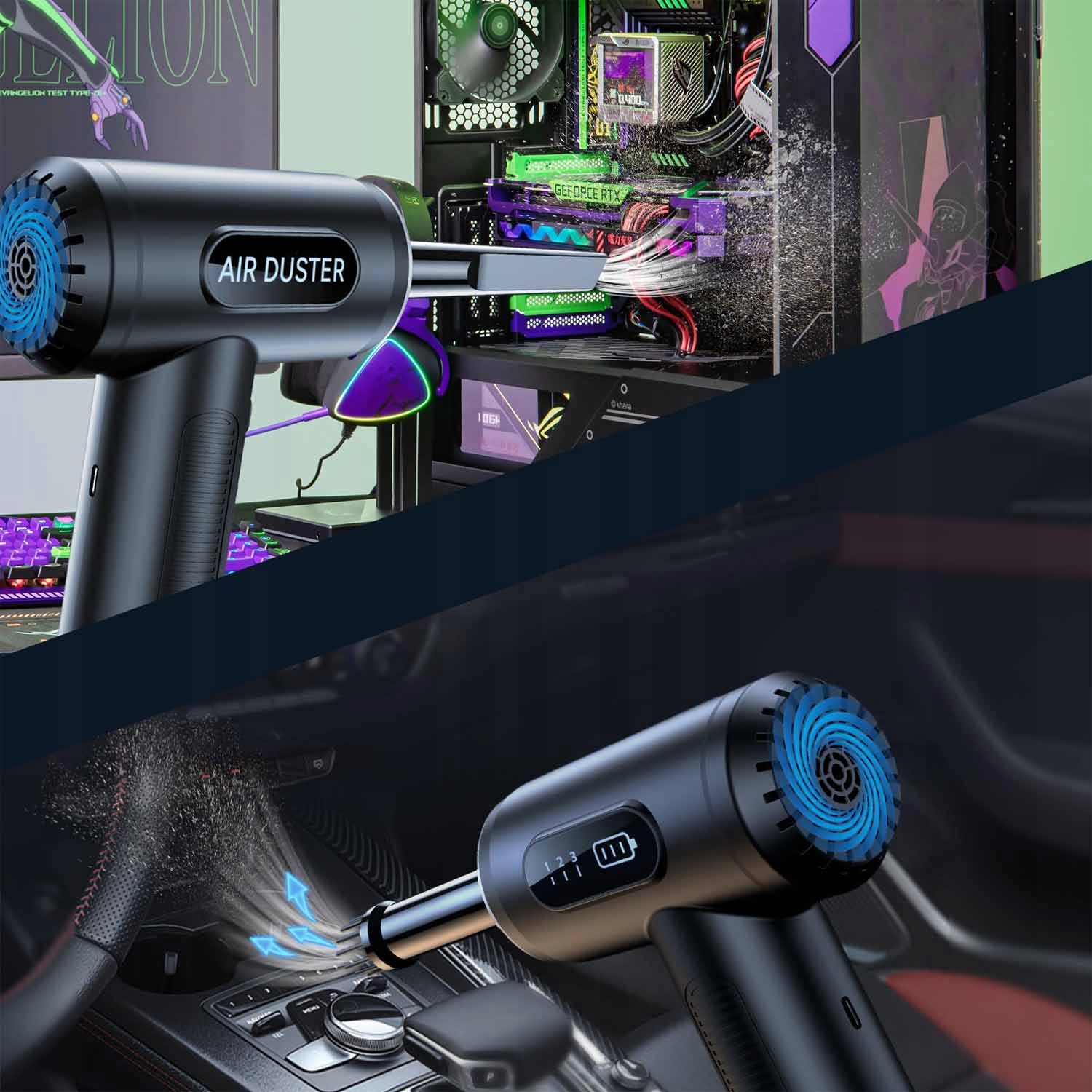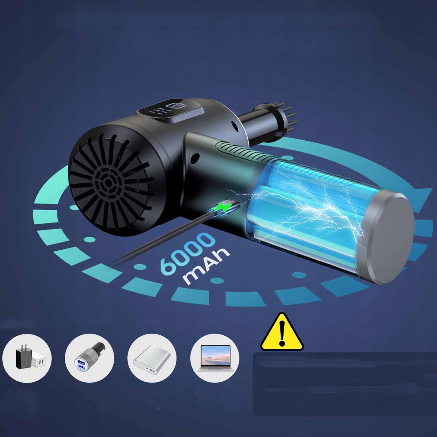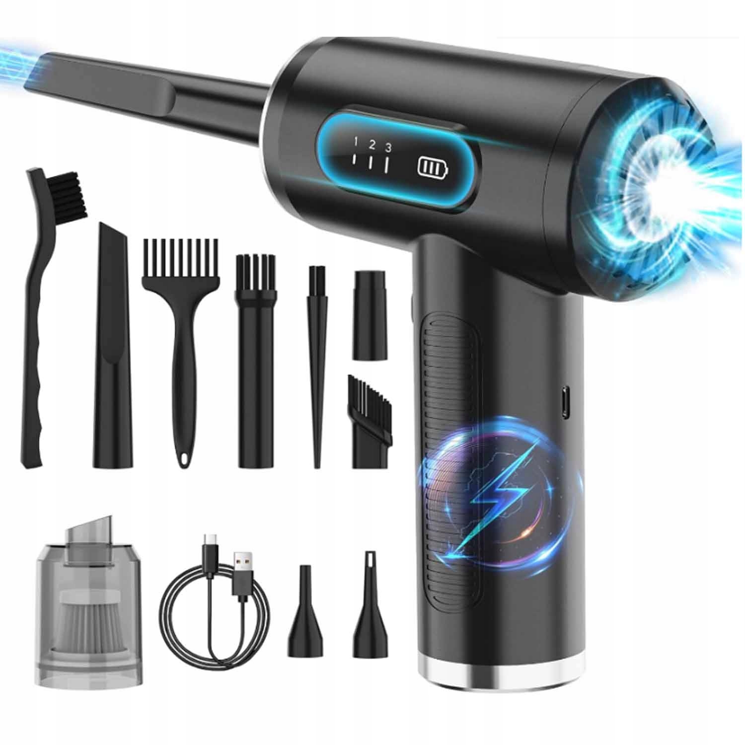 - ✔ Функції вибуху та пилососу: дезуфство та пилосос для стисненого типу повітря "два в одному" . Передня частина використовується для видування пилу, а задня використовується для вакууму. Підходить для різних електричних пристроїв. 12,5 м/с), сильний потік повітря, придатний для глибокого очищення, три рівні вакууму (; 3000pa, 4500pa та 6000pa), легко смоктати повітря. Натисніть і утримуйте кнопку живлення протягом 3 секунд, щоб увімкнути/вимкнути пристрій. Короткий прес викликає регулювання вітру/рівня вакууму до різних потреб. Вимкнене світлодіодне світло, яке дозволяє легко очистити кути і забезпечує велику зручність під час очищення. На дисплеї з високою роздільною здатністю показано швидкість вітру/рівень вакууму та решту потужності. Коли рівень акумулятора низький, символ живлення спалахне, а світлодіод не буде працювати. Передача даних типу C легко переносить і може бути заряджається ноутбуком, банком живлення, автоматичним зарядним пристроєм, акумулятором або перетворювачами живлення. вугілля. Насадка, що відповідає повітрям, також може бути використана для перекачування або спорожнення басейнів, ліжок, рятувальних човнів, вакуумних мішків тощо