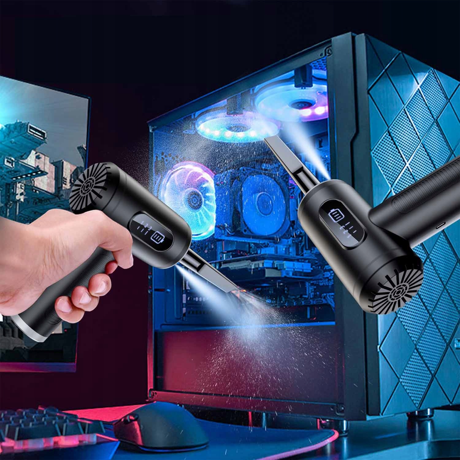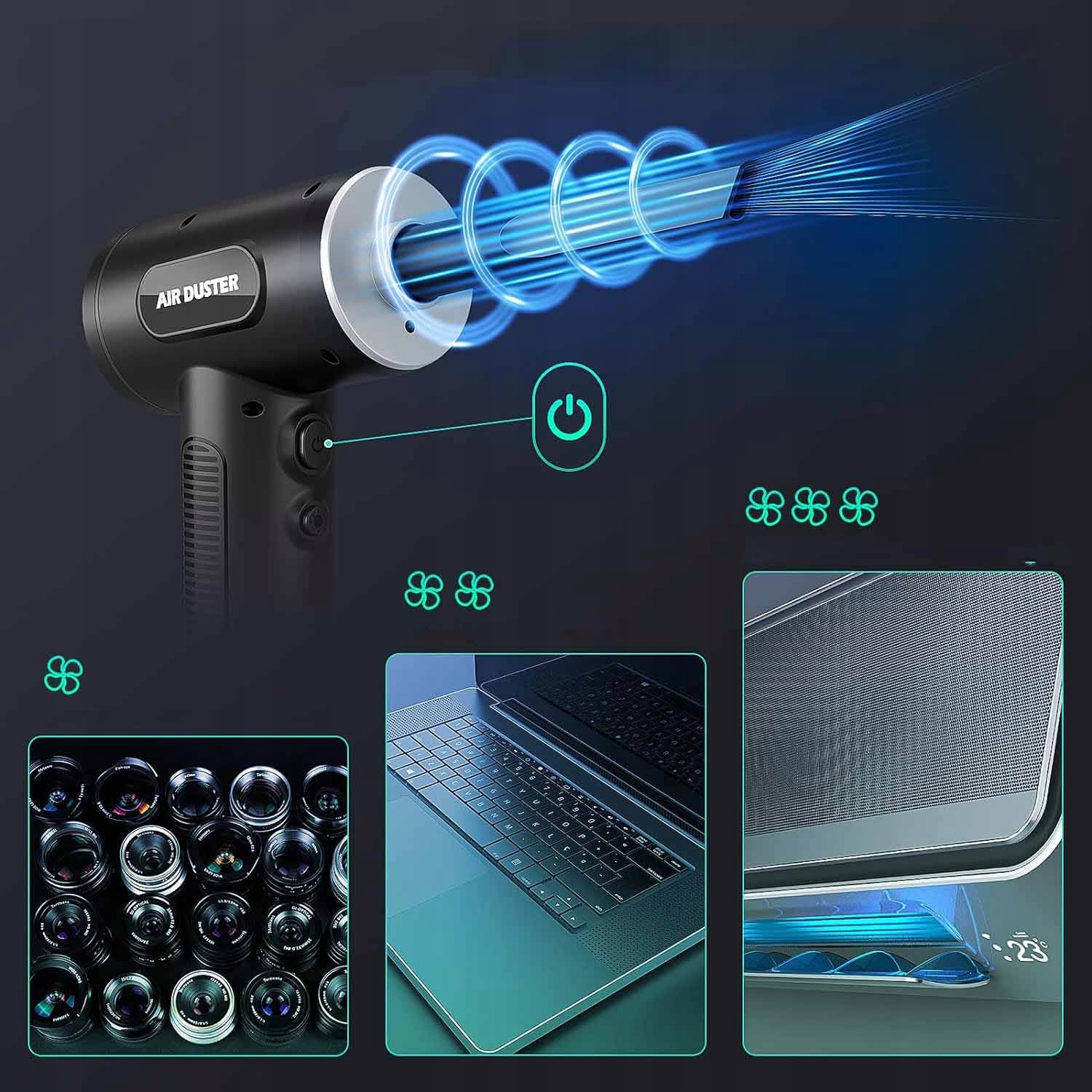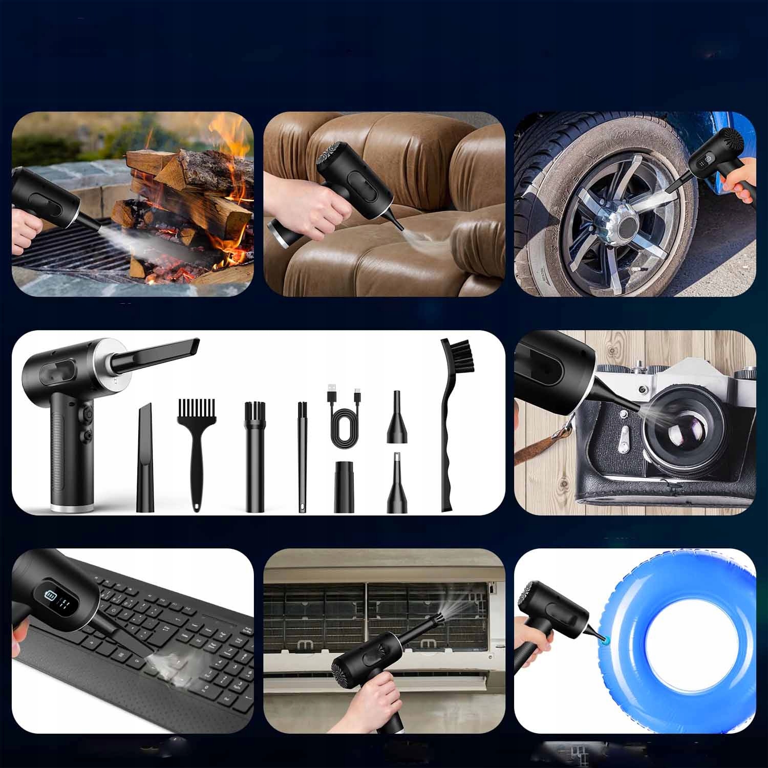 - ✔ Функції вибуху та пилососу: дезуфство та пилосос для стисненого типу повітря "два в одному" . Передня частина використовується для видування пилу, а задня використовується для вакууму. Підходить для різних електричних пристроїв. 12,5 м/с), сильний потік повітря, придатний для глибокого очищення, три рівні вакууму (; 3000pa, 4500pa та 6000pa), легко смоктати повітря. Натисніть і утримуйте кнопку живлення протягом 3 секунд, щоб увімкнути/вимкнути пристрій. Короткий прес викликає регулювання вітру/рівня вакууму до різних потреб. Вимкнене світлодіодне світло, яке дозволяє легко очистити кути і забезпечує велику зручність під час очищення. На дисплеї з високою роздільною здатністю показано швидкість вітру/рівень вакууму та решту потужності. Коли рівень акумулятора низький, символ живлення спалахне, а світлодіод не буде працювати. Передача даних типу C легко переносить і може бути заряджається ноутбуком, банком живлення, автоматичним зарядним пристроєм, акумулятором або перетворювачами живлення. вугілля. Насадка, що відповідає повітрям, також може бути використана для перекачування або спорожнення басейнів, ліжок, рятувальних човнів, вакуумних мішків тощо