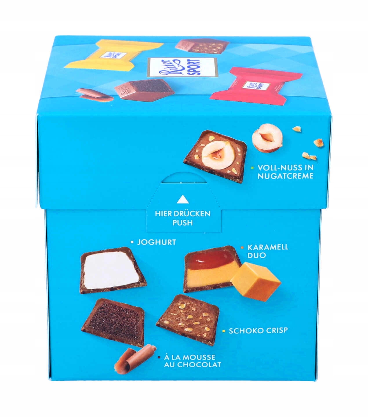 Іноді хочеться просто сказати «дякую». А інколи так хочеться сказати «дякую» п’ять разів. Саме за ці моменти ми дякуємо нашим особливим шоколадним цукеркам Ritter Sport. П’ять різних смаків: чудовий йогурт, цільні горіхи в кремі з нугою, шоколад у стилі муссо, хрусткий шоколад і абсолютно новий карамельний дует. Сказати «дякую» ще ніколи не було так смачно.