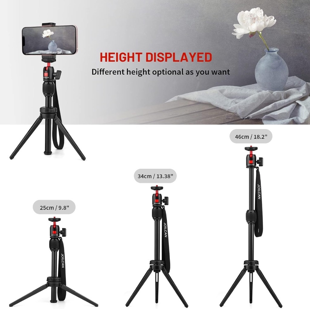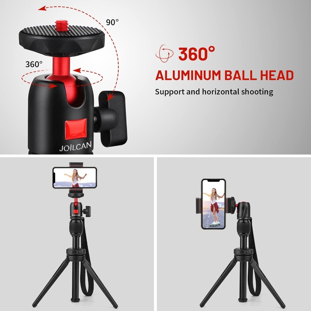 Широка сумісність: оснащена стандартними гвинтами на 1/10,2 см, підставка таблиці широко сумісна з більшістю компактних камер, міні -проекторів та веб -камер. Включає універсальний телефонний кліп, сумісний з усіма телефонами, такими як iPhone 15/14/13/12/11/14 Pro/13Pro/14Pro Max/XS/XS Max/8, Samsung, Huawei