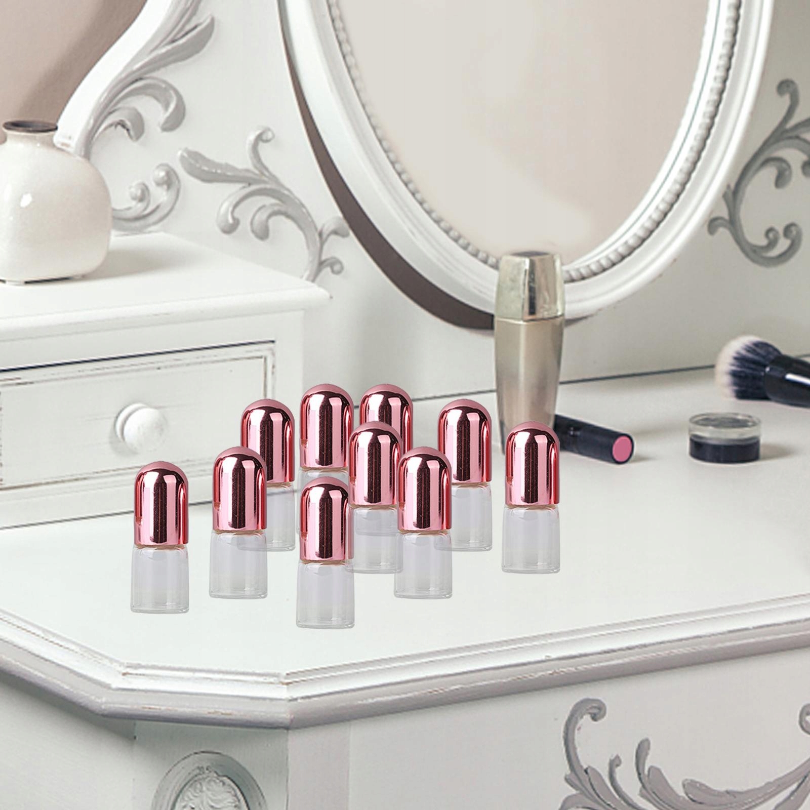 Пляшки з ефірним маслом: набір з 10 пляшок ефірних масел з металевими, тісними кульками та рожевими кришками. Ідеально підходить для ефірних масел, парфумів, зразків або іншої презентації рідини тощо