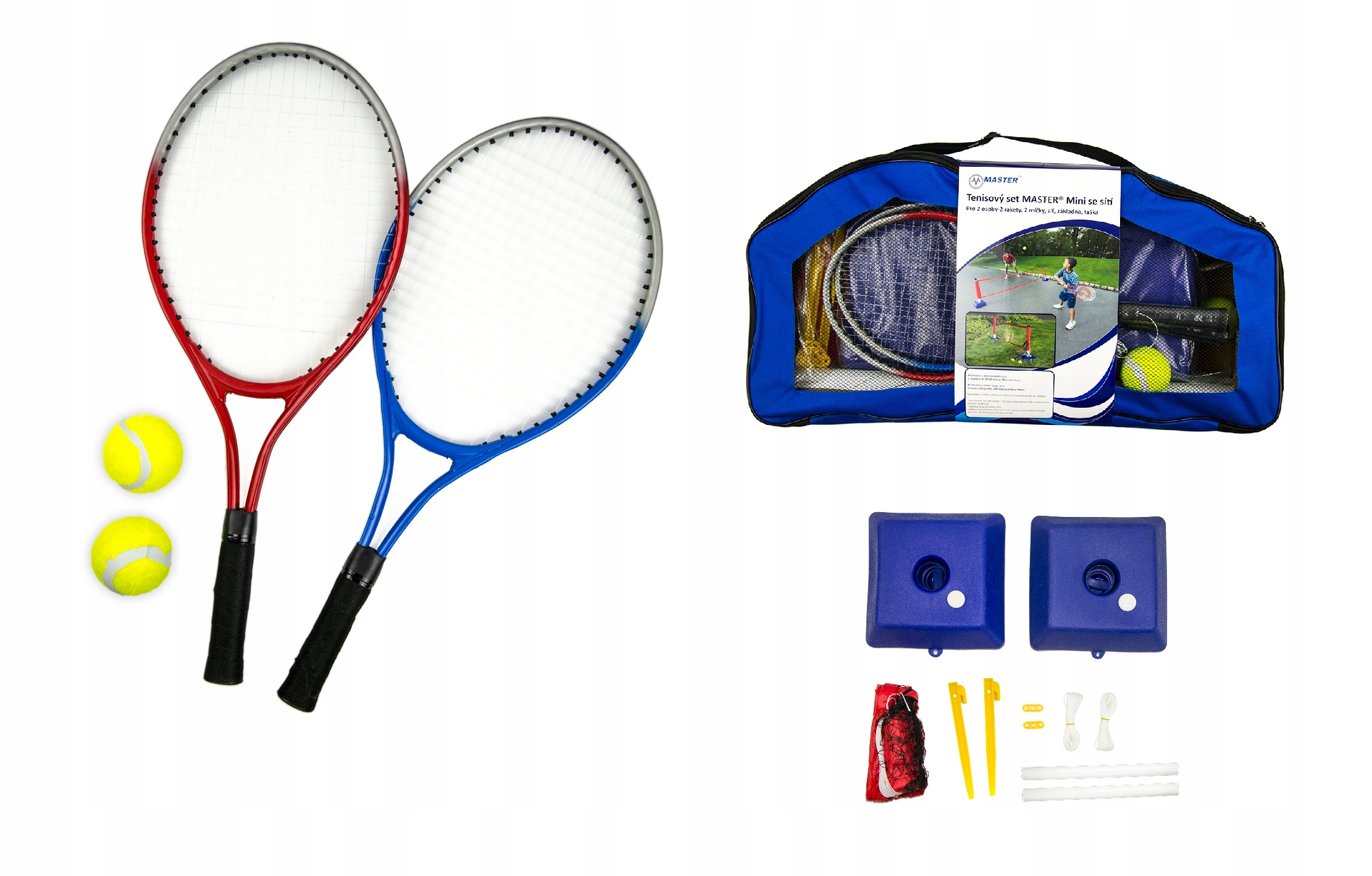 міні -тенісний майстер Майстер -міні -тенісний комплект включає дві тенісні ракетки, дві кульки та сітку стійки та транспортний пакет. Специфікація: