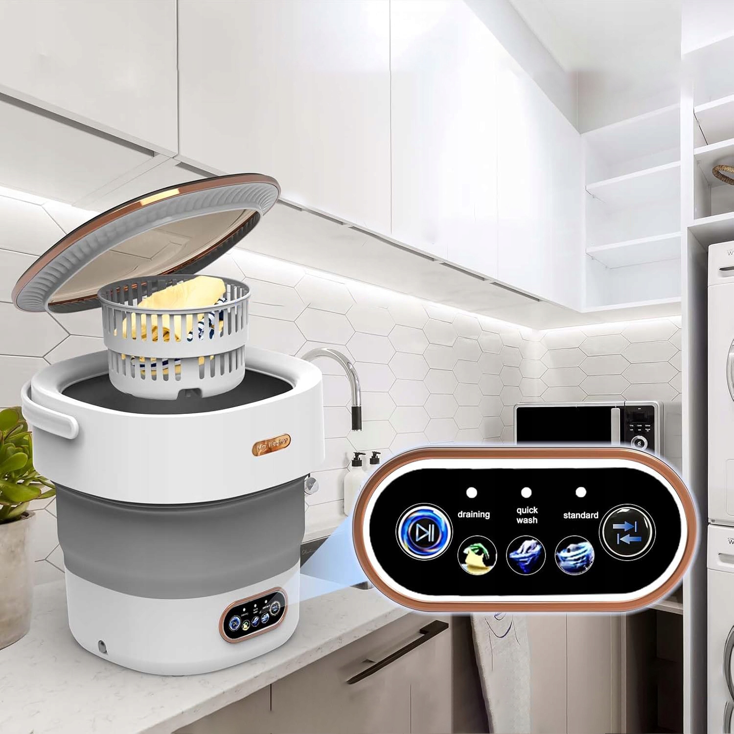 Мініатюрна складна пральна машина - це легка та портативна побутова прилад. Невелика пральна машина - це інноваційний спосіб легко перевозити та зберігати у вашій валізі якнайшвидше.