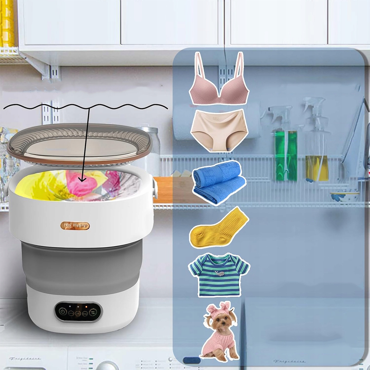 ● Ця складна міні -пральна машина з потужністю 15 л розроблена для миття невеликих і легких речей, таких як рушники, ганчірки, шкарпетки, нижня білизна, дитячий одяг та сорочки. Експерти з миття рекомендують, щоб отримати чистіші результати, вимийте різні види одягу окремо. Велика потужність 15 літрів є достатньою для повсякденних потреб. Ідеально підходить для людей, які часто подорожують, ділові подорожі, оренду квартир та сімей з дітьми, тваринами та хворими.