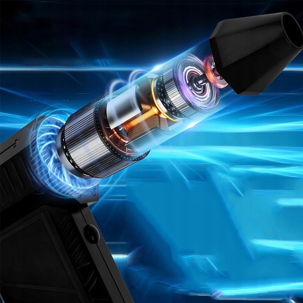 - Цей електричний вентилятор пилу має двигун зі швидкістю 130 000 об/хв, піковою швидкістю вітру понад 52 м/с (супер тайфун ≥51,0 м/с), що забезпечує потужні результати.