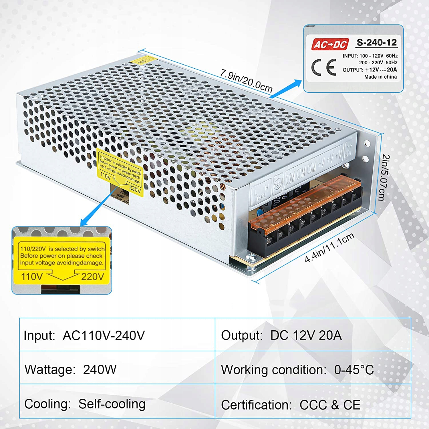 -будівельний трансформатор трансформатора живлення 12В 20a виготовлений з міцного алюмінію. Внутрішня котушка виготовлена з чистої міді, а термін служби більше ніж удвічі більше, ніж у випадку з алюмінієвим дротом.