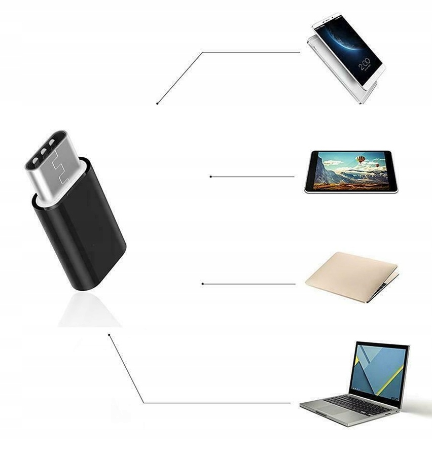 Адаптер micro USB/USB TYPE-C дозволяє підключати аксесуари з портом USB до пристроїв, обладнаних роз’ємом USB TYPE-C.