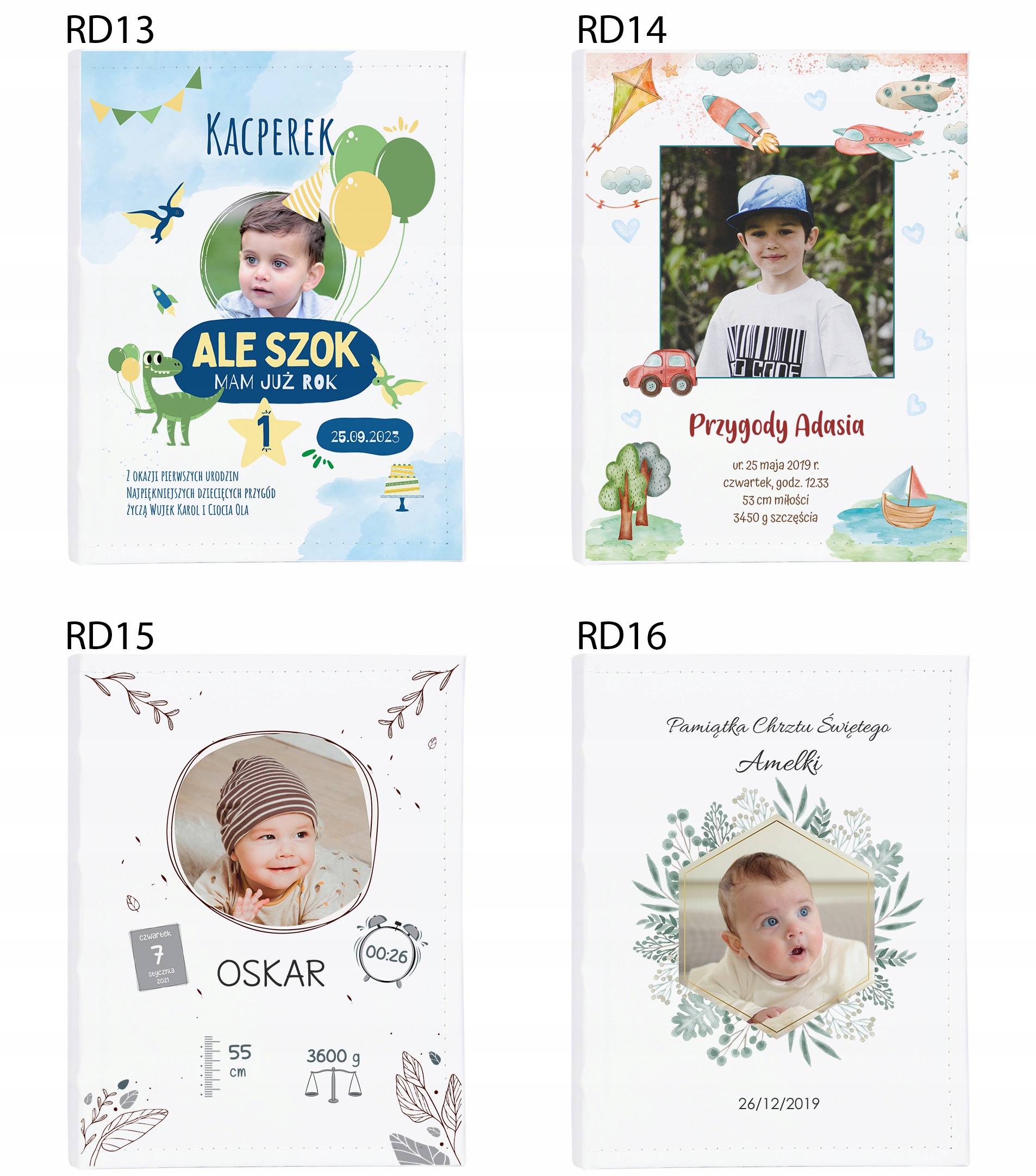 - можливість додати ім'я, фотографію та свідоцтво про народження на обкладинку,