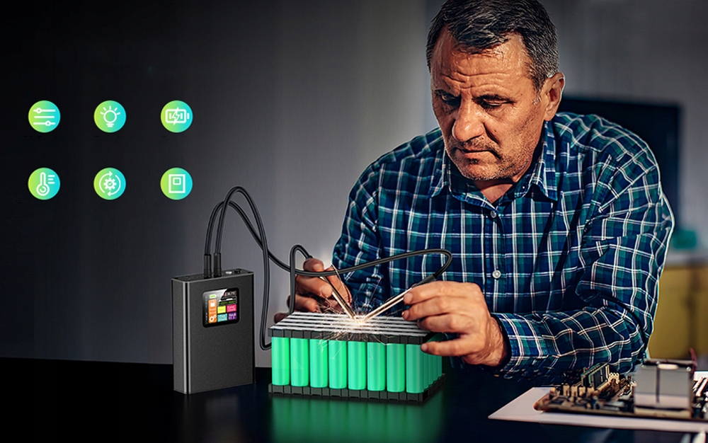 - Апарат для точкового зварювання має два вдосконалених літієвих елемента, а одна мікросхема ЧПК може генерувати потужний імпульсний струм для точкового зварювання.< /li >