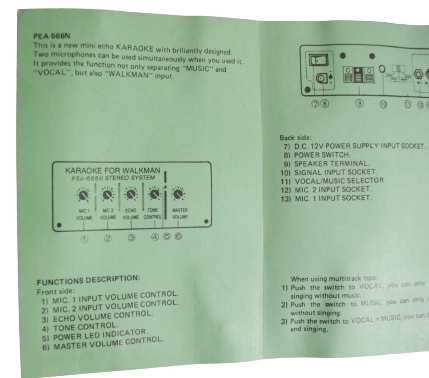 - КАРАОКЕ; сигнал можна подавати від магнітофона, радіо, CD + спів від мікрофона