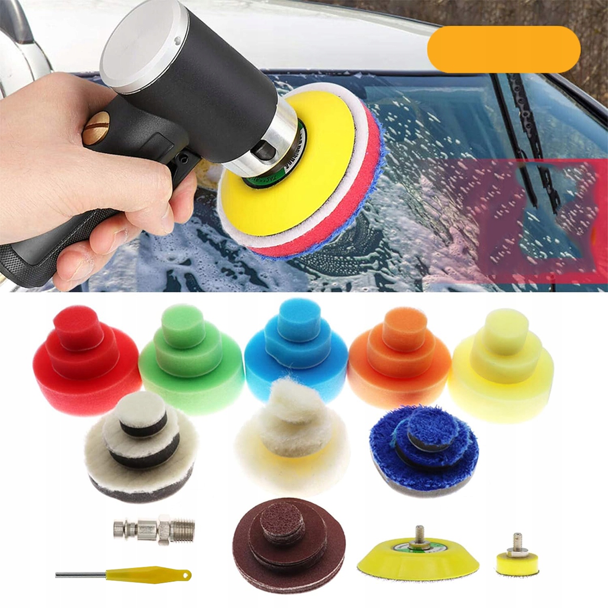 - Включає губчасті полірувальні подушечки та паперові полірувальні диски для різноманітних завдань полірування.