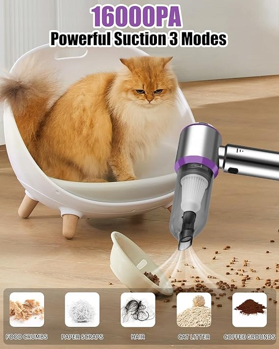- Багатофункціональний ручний пилосос 3-в-1: із функціями всмоктування, видування, видування та очищення цей міні-пилосос є універсальним у використанні. Аксесуари, що входять у комплект, такі як антистатичні насадки та щітка, ідеально підходять для шерсті домашніх тварин, дивана та навіть для надування кемпінгових матраців. Незамінний ручний пилосос.