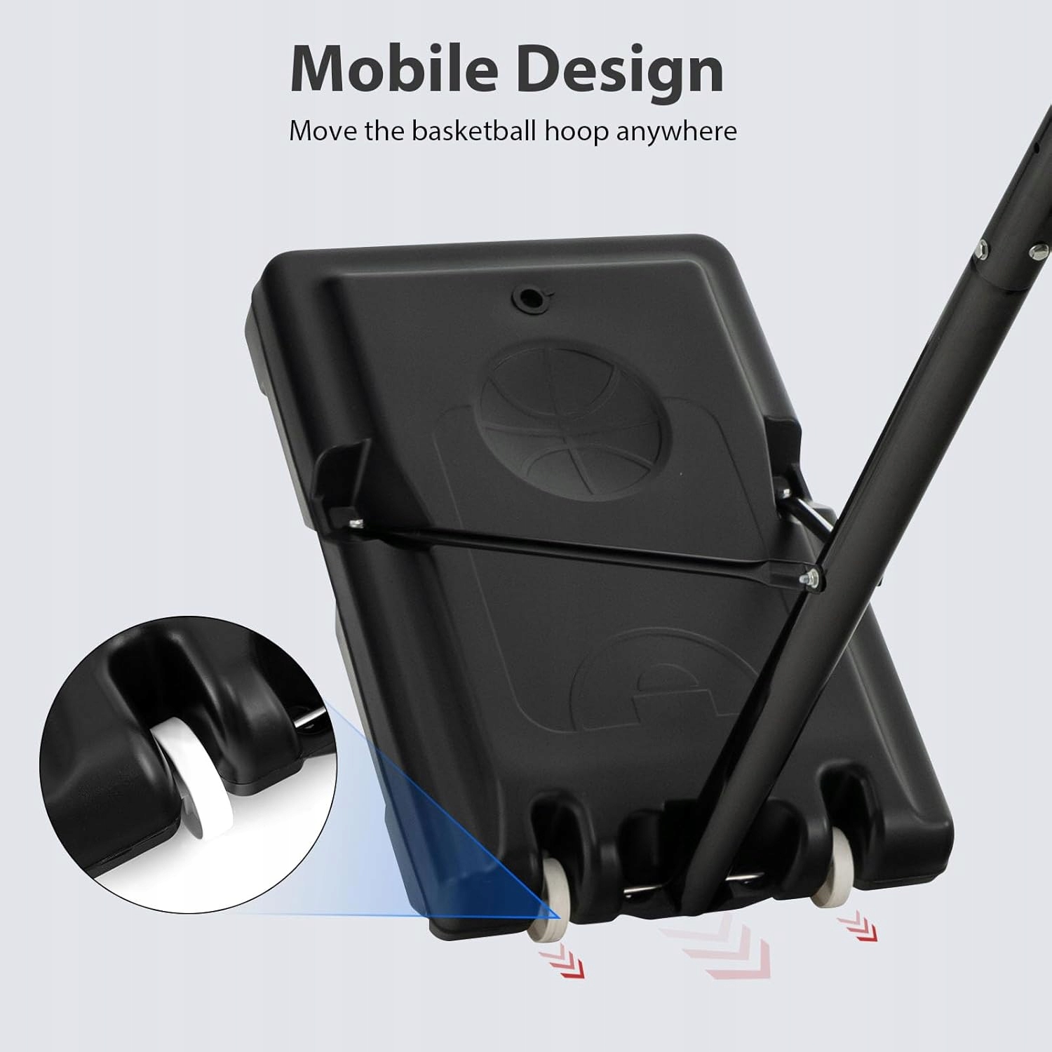 - Зважена мобільнаоснова (80x50x16 см) наповнюється піском і має вбудовані колеса для зручності перенесення