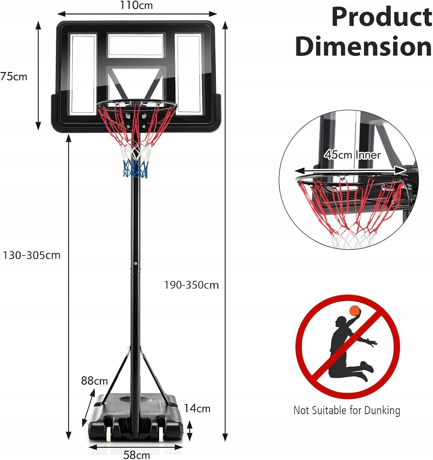 - Регулювання висоти до 213 см для гри на майданчику та до 92 см для гри молоді або плавання басейн