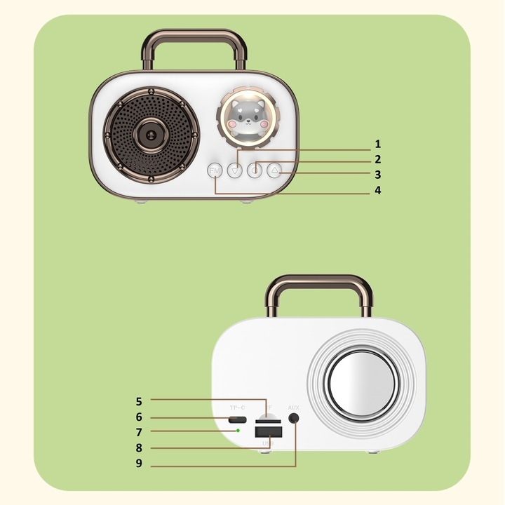 ✅ Сила динаміка 5 Вт надає глибокий звук , який оживитиме кожну подію. Крім того, спікер має практичну ручку, що робить його ідеальним супутником як під час домашніх, так і на відкритому повітрі.