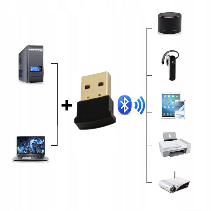 Завдяки маленькому адаптеру ви можете оснастити свій комп'ютер функцією бездротової двосторонньої передачі даних Bluetooth. Відтепер навіть старе обладнання може віддалено підключатися до таких пристроїв, як колонки, гучномовець, принтери та монітори, клавіатури та миші.