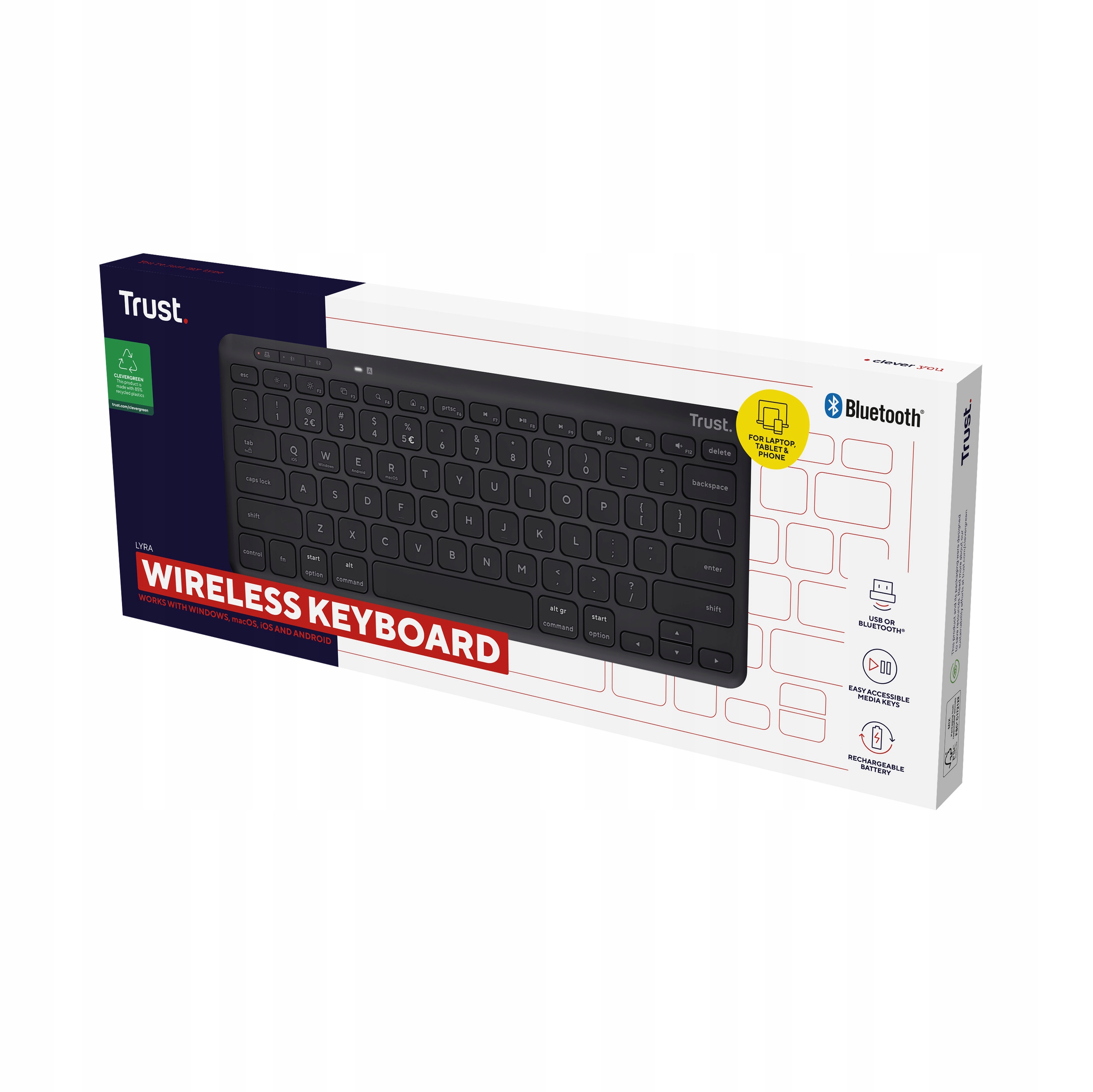 КОМПАКТНА БЕЗДРОТОВА КЛАВІАТУРА З BLUETOOTH TRUST LYRA