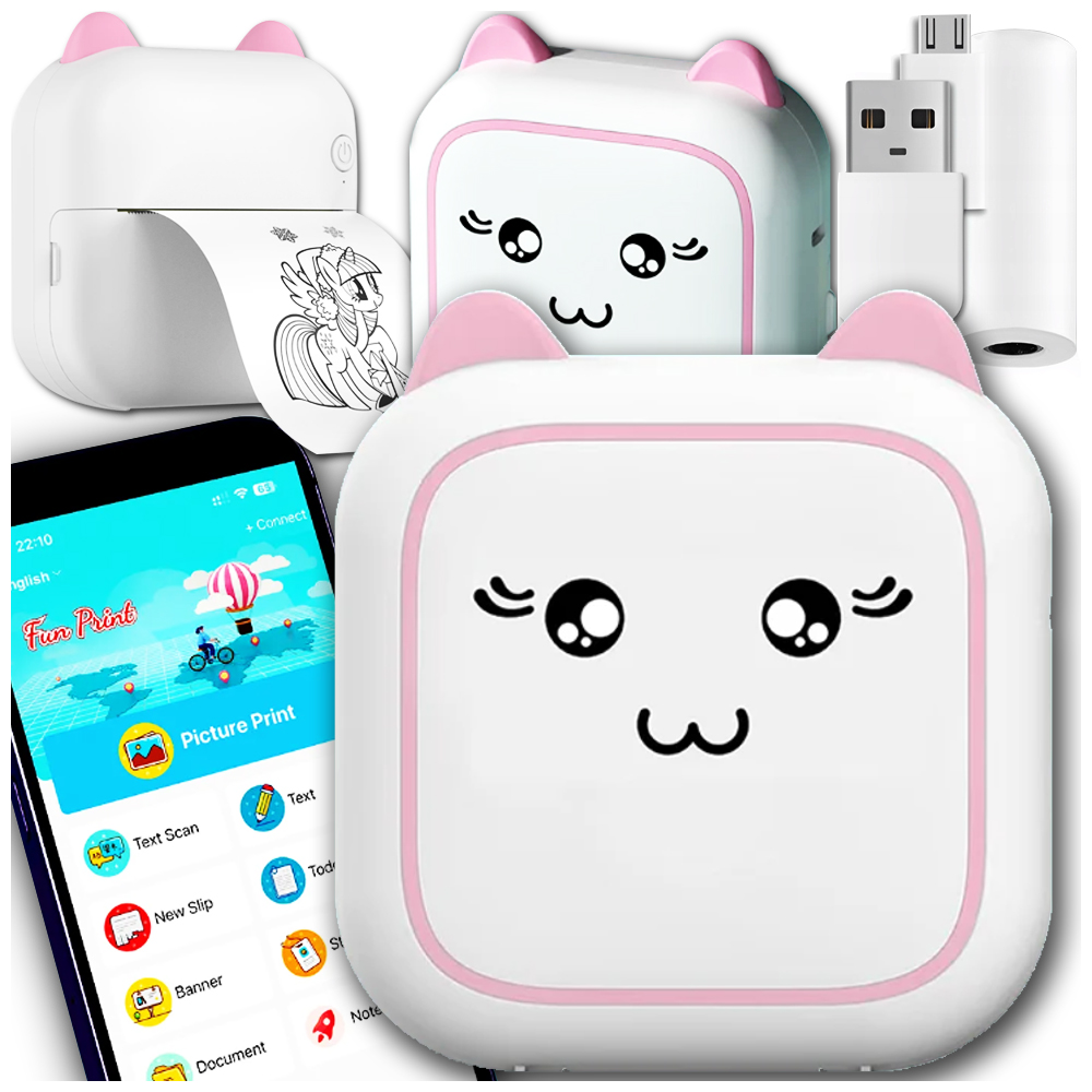 Міні-принтер Kitten для портативного телефону Bluetooth + рулон паперу 2024