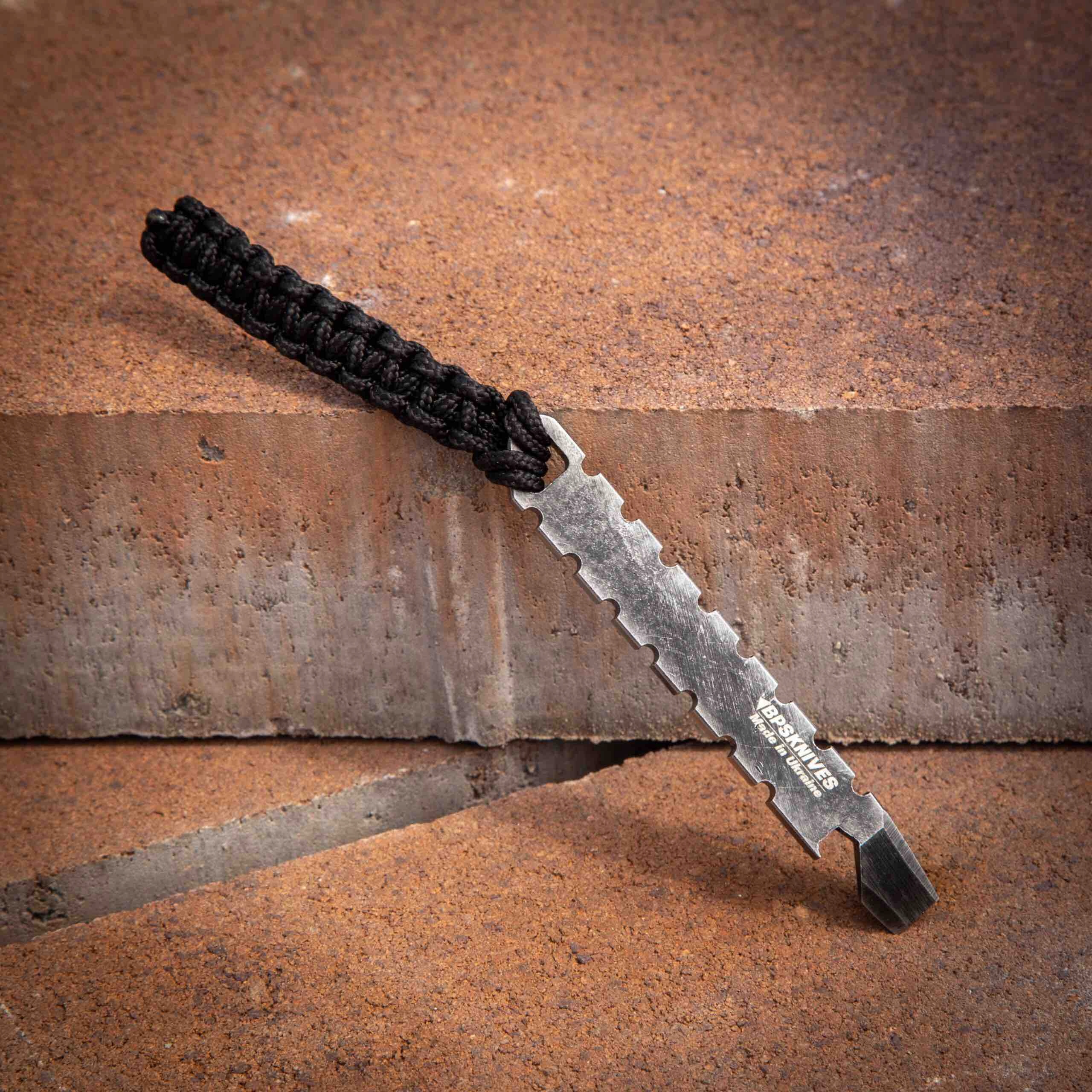 Кишеньковий мультиінструмент Mini Crowbar BPS Knives Pry Bar Cце дуже зручний інструмент, призначений для повсякденного використання (EDC). Невеликий розмір (89 мм | 3,74 дюйма) легко поміститься в кишені, сумочці або на кільці для ключів. Весь виготовлений із загартованої вуглецевої сталі 1066, захищеної від окислення, і містить міні-лом / широку плоску викрутку, за допомогою якої можна легко відкрити балончик з фарбою або витягти його. Аксесуари у вигляді відкривачки для пляшок і плетеного паракорду, вмонтованого в призначений для неї отвір, додатково підвищать її корисність.