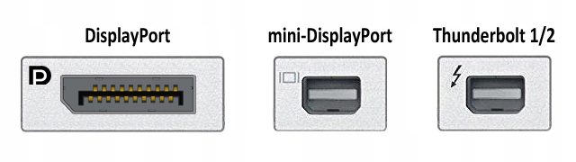 minidisplayport (minidp) з’єднання Передача цифрового зображення та звукового сигналу. Роз'єм Thunderbolt1, представлений Appla в 2011 році, та Thunderbolt2, представлений у 2013 році, сумісні з роз'ємом Minidisplayport, тому всі пристрої співпрацюють з Minidisplayport, також працюють з Thunderbolt1 та 2 портами Microsoft, Lenovo, Toshiba, HP, Dell та деякі монітори ПК та материнські плати.