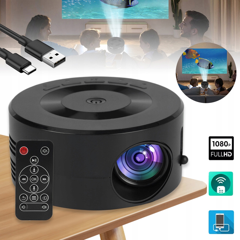 МІНІ ДОМАШНИЙ ПРОЕКТОР ПОРТАТИВНИЙ ДЛЯ ТЕЛЕФОНУ, СМАРТФОНУ, LED ПРОЕКТОР 1920X1080