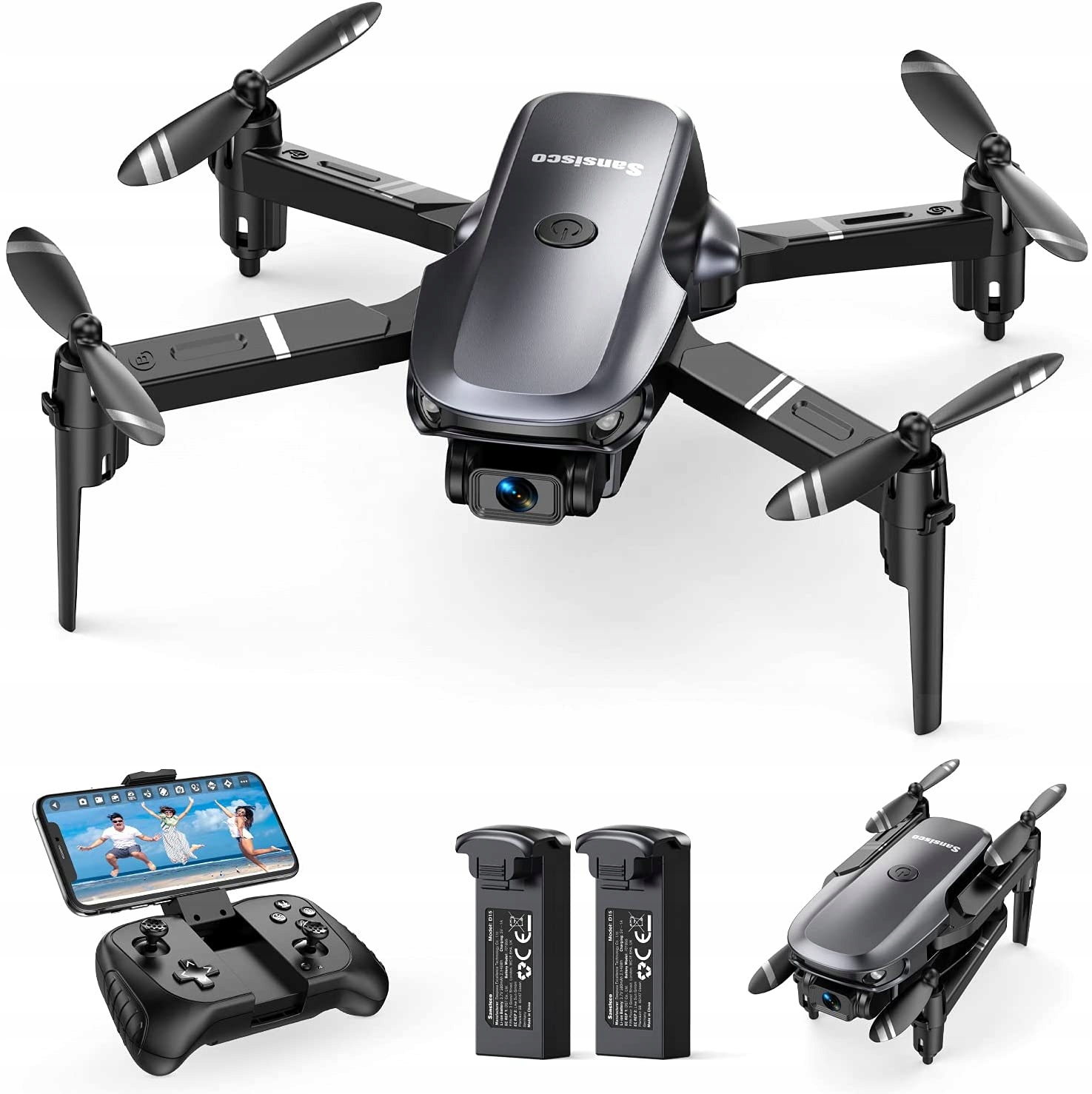 Міні-дрон Sansisco D15 для дітей і початківців із пультом дистанційного керування камерою 1080P FPV, складаним дроном із безголовим режимом, утримуванням висоти, маршрутними точками, керуванням гравітацією, керуванням жестами та 3D-перевертанням на 360°