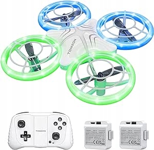 - ⭐️Динамічне світлове шоу: дрон Tomzon A34 покритий яскравими світлодіодами, які випромінюють яскраве неонове зелене та синє світло для потужних ефектів світло. Він також має 5 різних режимів освітлення, які можна змінити вручну, короткочасно натиснувши кнопку освітлення. Цей міні-світлодіодний дрон підходить для польотів у приміщенні, простий у управлінні та зручний для новачків. Діти будуть у захваті від миготливих вогнів!