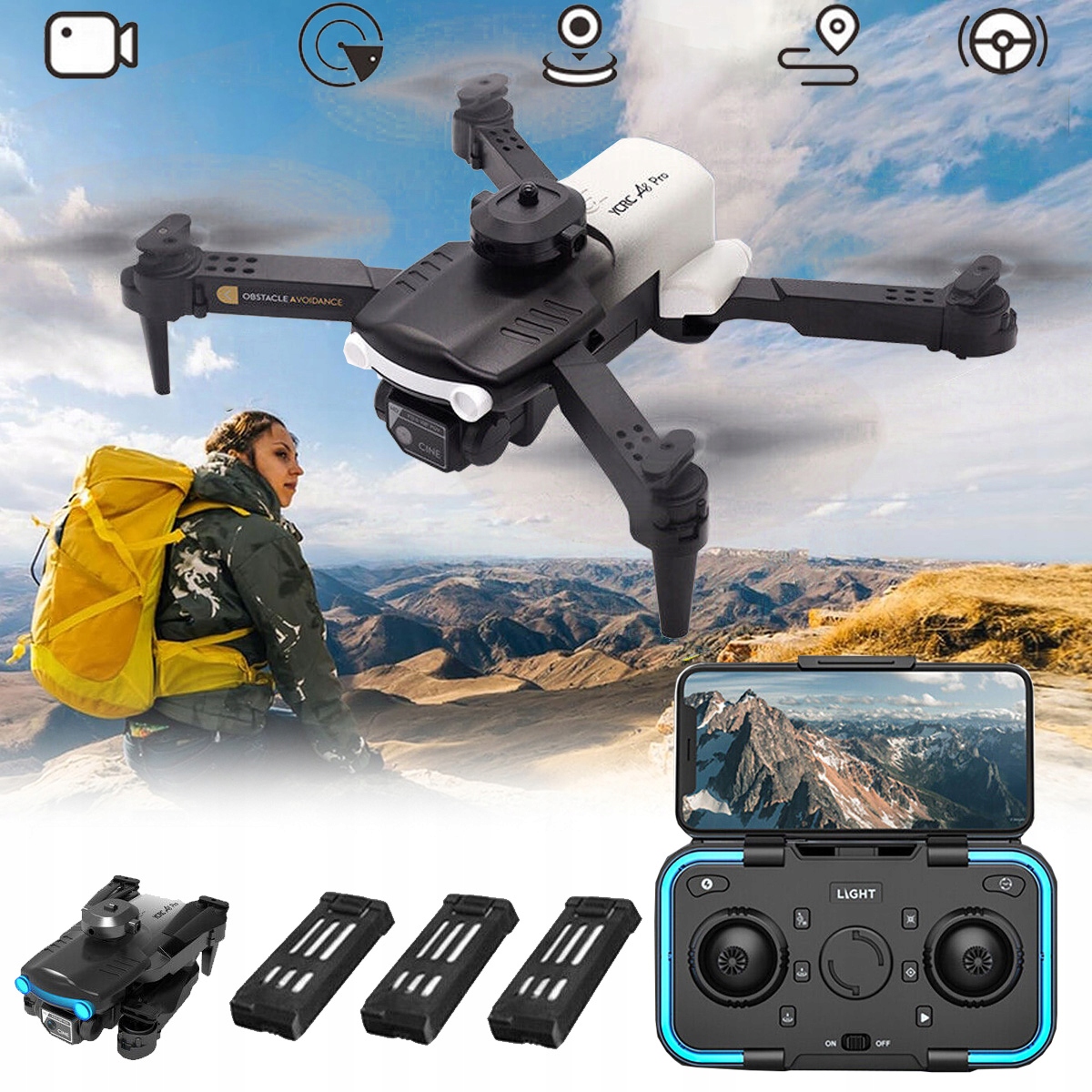 ✅【Функції】 Подвійна камера 4K, траєкторія, керування жестами, 3D-політ, безголовий режим, автоматичне наведення, зліт/посадка однією кнопкою, фото/відеозйомка, уникнення перешкод, позиціонування оптичного потоку тощо.