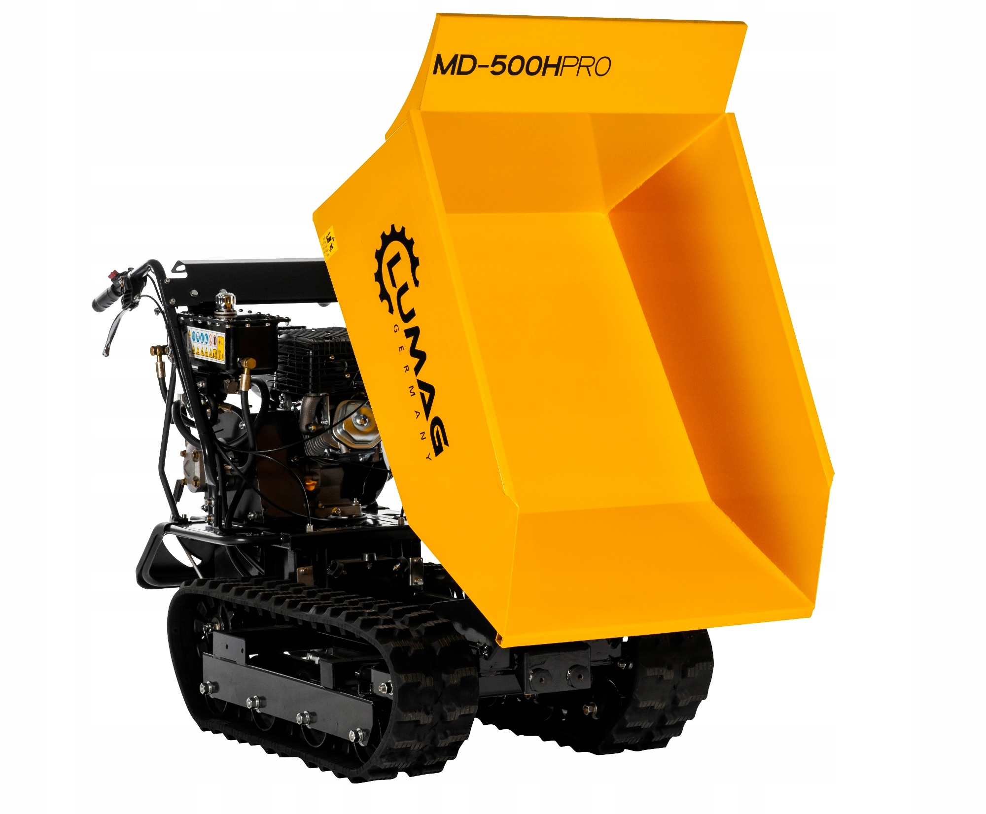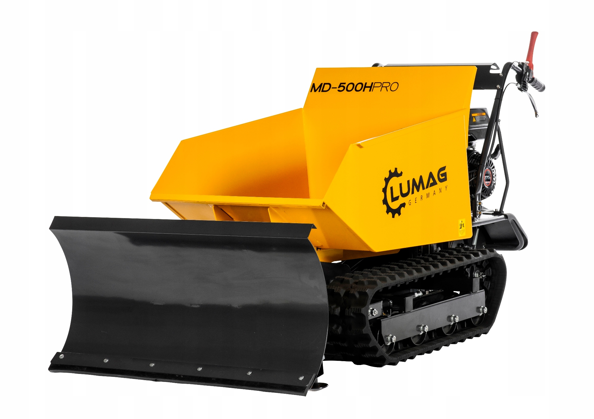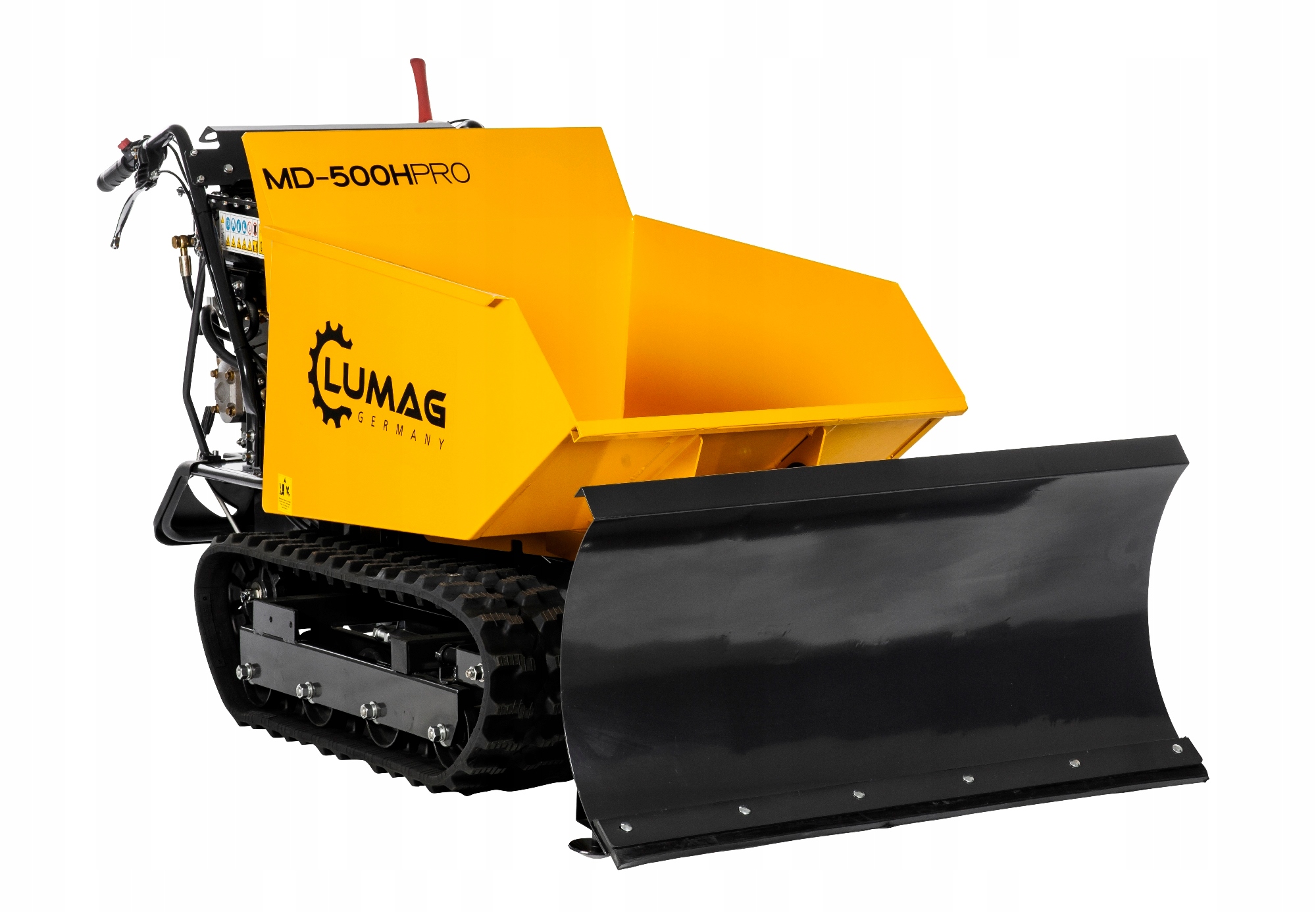 Міні-самоскиди Lumag Germany добре працюють у найважчих умовах завдяки міцній конструкції та високоякісним матеріалам. Конструкція самоскидів дозволяє забезпечити високу ефективність і економічність. Гусеничний міні-самоскид MD500H-PRO з гідравлічним перекидачем, завдяки своїм габаритам, може вільно використовуватися в будівлях і у вузьких проходах і проходах. Вантажопідйомність 500 кг.
