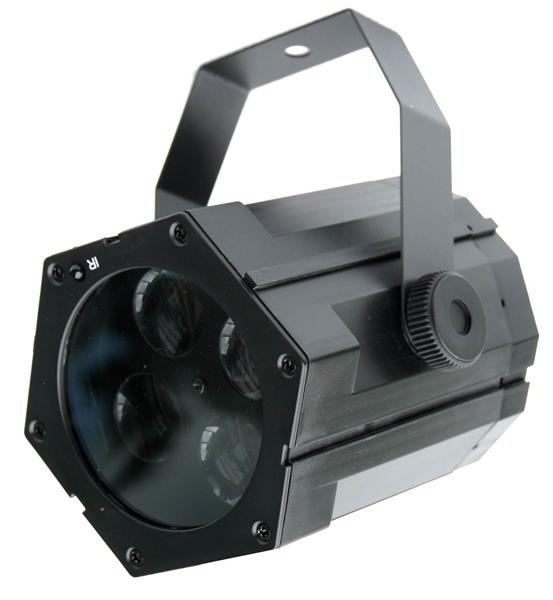 Компактний ефект світла з світлодіодною технологією R/G/B/W. Фара кидає 4, що рухається барвистим гобо на стіну або паркет. Рухи GOBO можуть контролюватися ритмом музики (бас), але також можна продовжувати ефект ефекту в автоматичному режимі.