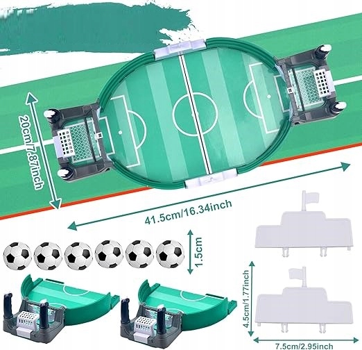 - У набір входить набір аксесуарів: 1 настільний футбол, 4 рукоятки для стрільби, 2 ворота, 2 бар’єри та цілих 6 міні-м’ячів. Портативний дизайн робить гру придатною для гри вдома, під час світських заходів, барбекю, подорожей або сімейних заходів. Це ідеальний подарунок на день народження, свято та будь-яке свято!
