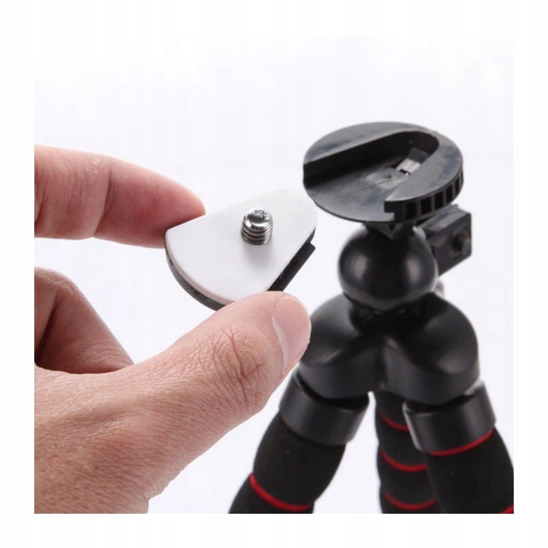 Світло і міцний фотографічний штатив з гнучкими ногами та головою кульки . Спеціальний дизайн, виготовлений із армованих барів, дозволяє майже будь -яке положення, скрутити та згинати ноги, а гумові ноги захищають штатив від ковзання. Ноги подають сильний опір при згинанні, ймовірно, "хапаючи" поверхню, навколо якої вони обгорнуті. Невелика головка кулі додатково розширює функціональність штатива, а знімний швидкий роз'єм дозволяє просту і дуже зручну установку обладнання.