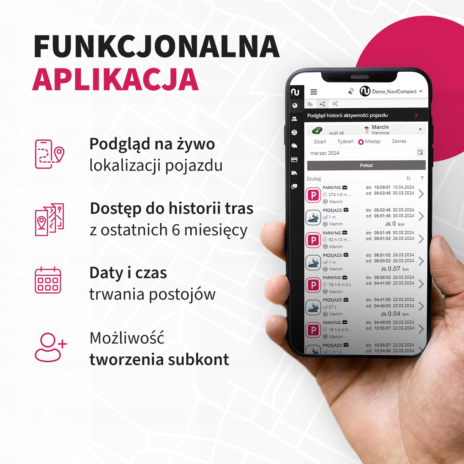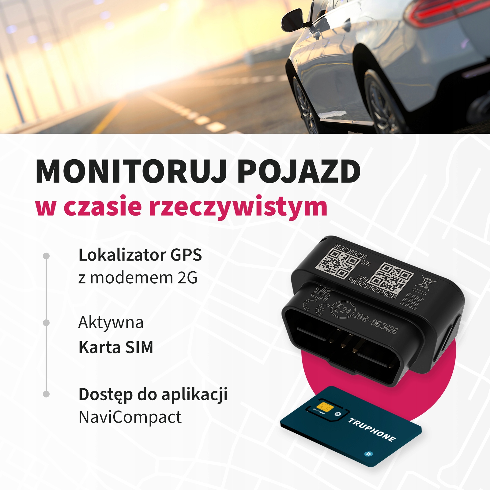 Річна підписка на NaviCompact: 170 злотих (приблизно 15 злотих/місяць) ). Без контракту, без зобов'язань. Ви вирішуєте, як довго стежити за своїм автомобілем! Польське застосування, польський виробник. Жодної китайської їжі!