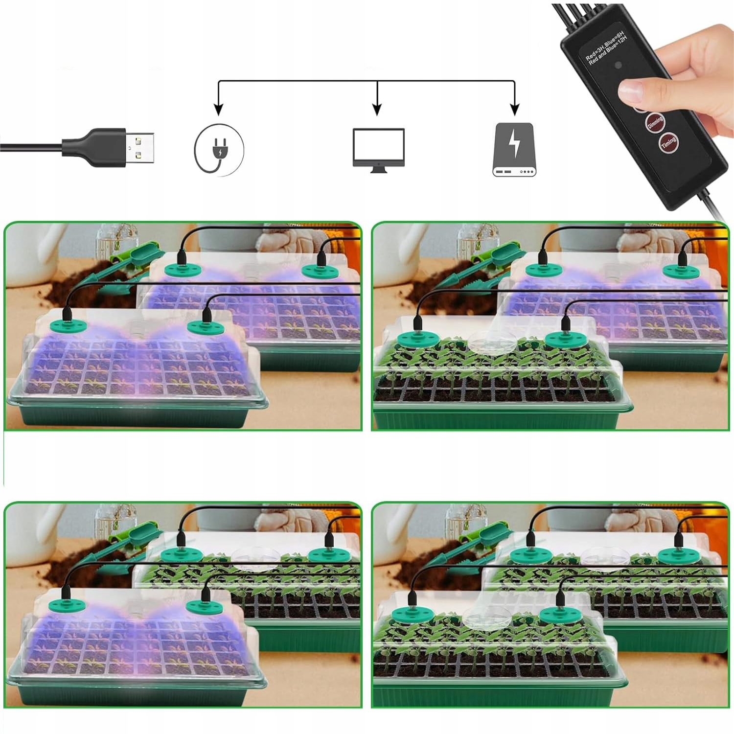 - Він має 3 режими часу (3/6/12 год) і 5 рівнів яскравості, що дозволяє точно налаштовувати умови відповідно до потреб рослин.