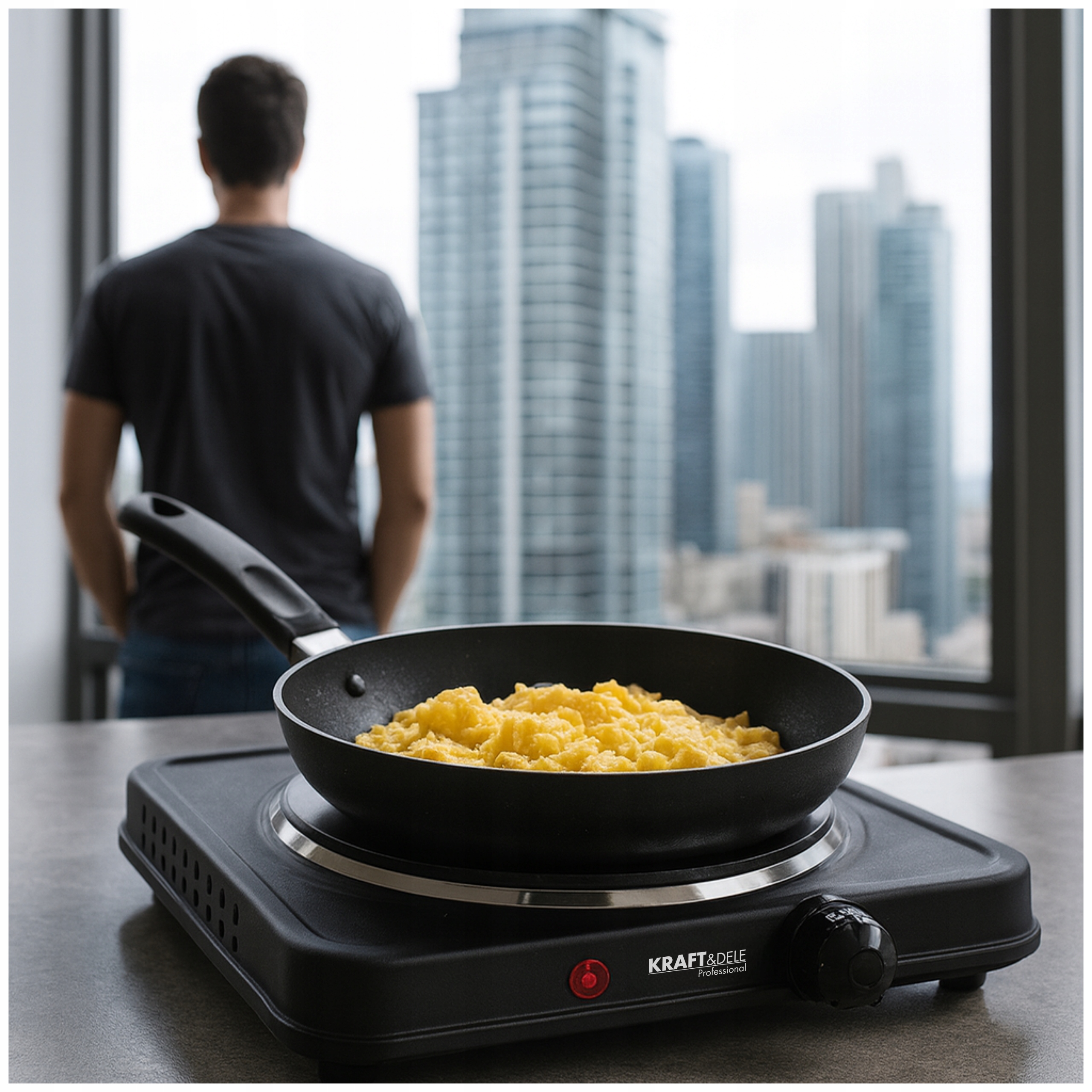 ⭐ Плита має тверду нагрівальну пластину діаметром 185 мм, яка рівномірно розподіляє тепло. Корпус виготовлено з температуростійкого матеріалу, який захищає користувача від випадкових опіків.