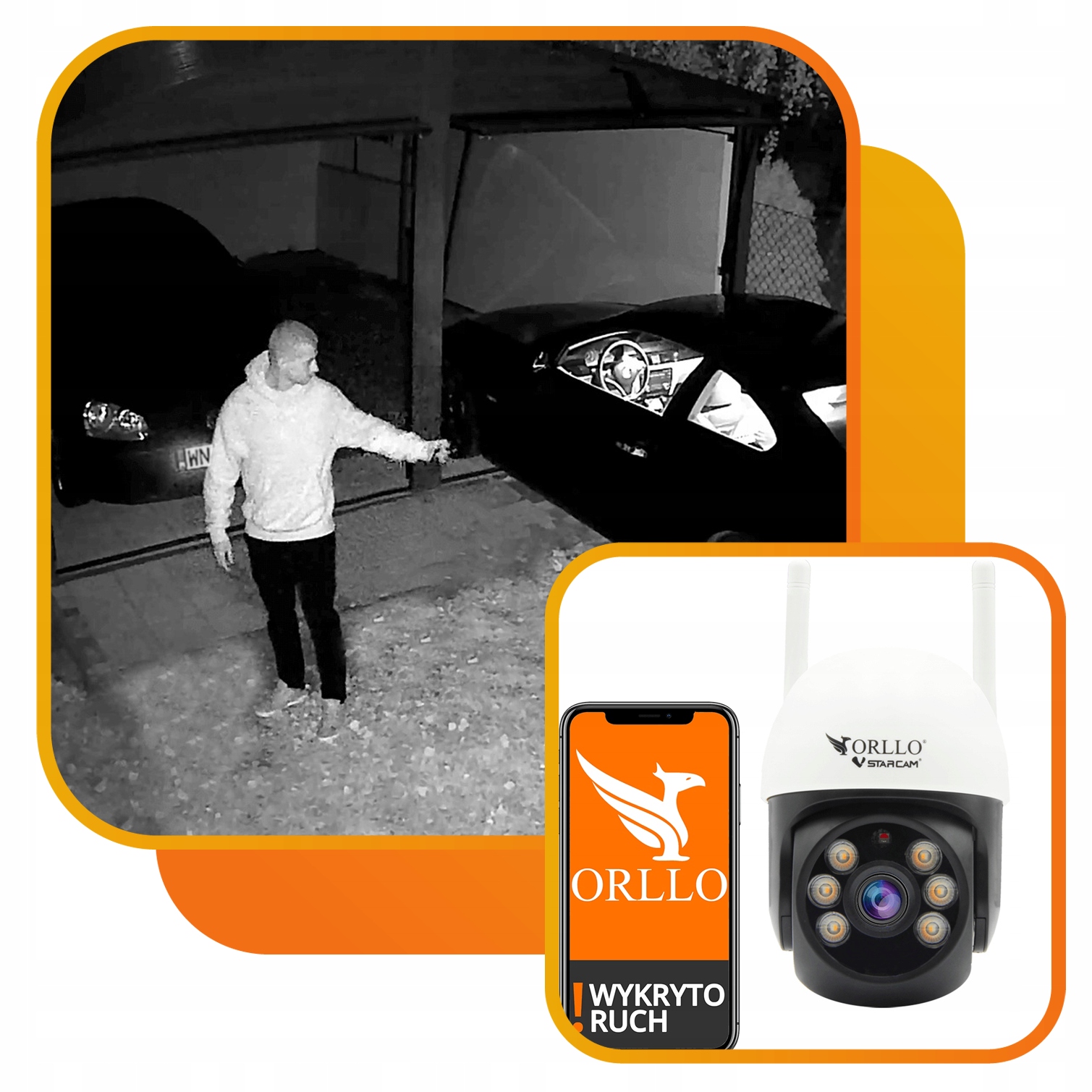 Завдяки технології Orllo Night Color камера дозволяє записувати кольорове зображення вночі. Коли світлодіоди активуються, вони освітлюють простір, що контролюється, дозволяючи записувати чіткі барвисті відео навіть в умовах слабкого освітлення.